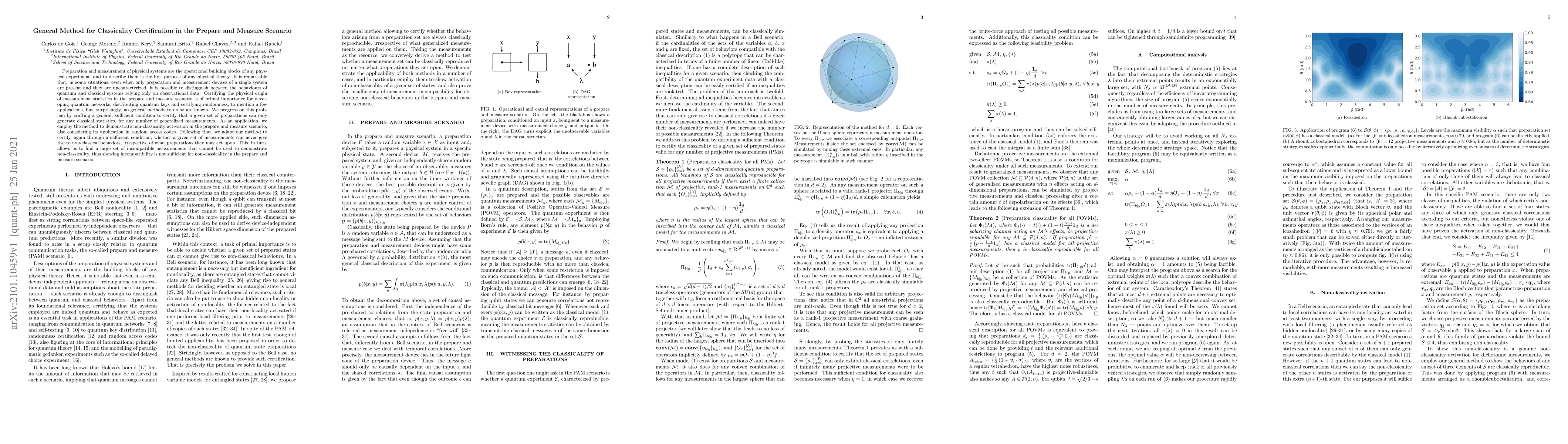 The work presents a novel, general method for certifying classicality in the prepare and measure scenario, surpassing existing methods that only addressed specific cases or limited numbers of measurements.