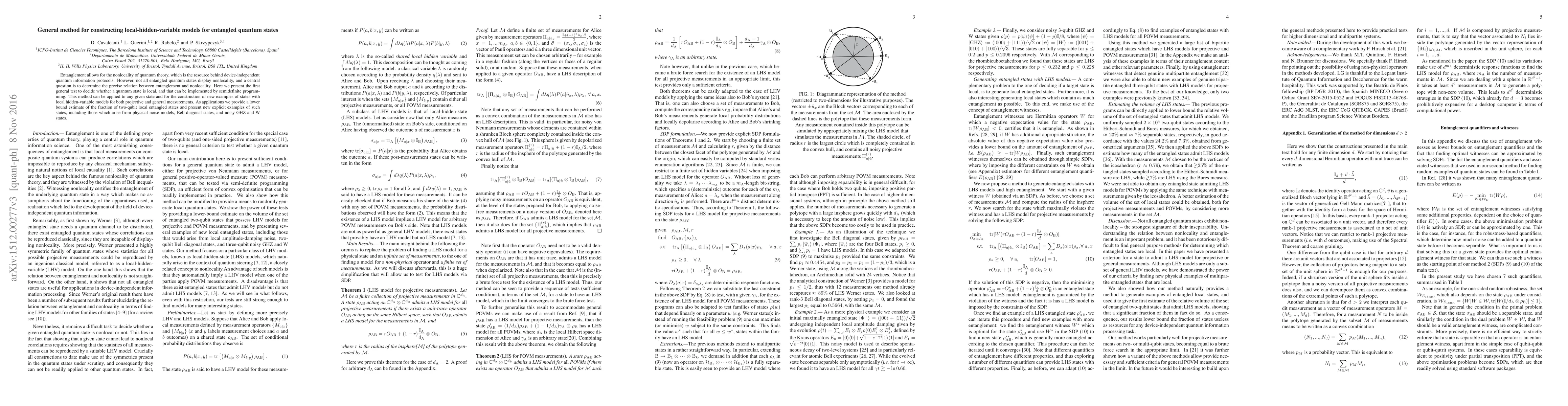 This paper introduces a general method for determining if a quantum state is local using semidefinite programming, applicable to any state and aiding in constructing local hidden-variable models. It provides a lower bound estimate for two-qubit local entangled states and presents new examples of such states, including those from physical noise models and Bell-diagonal states.