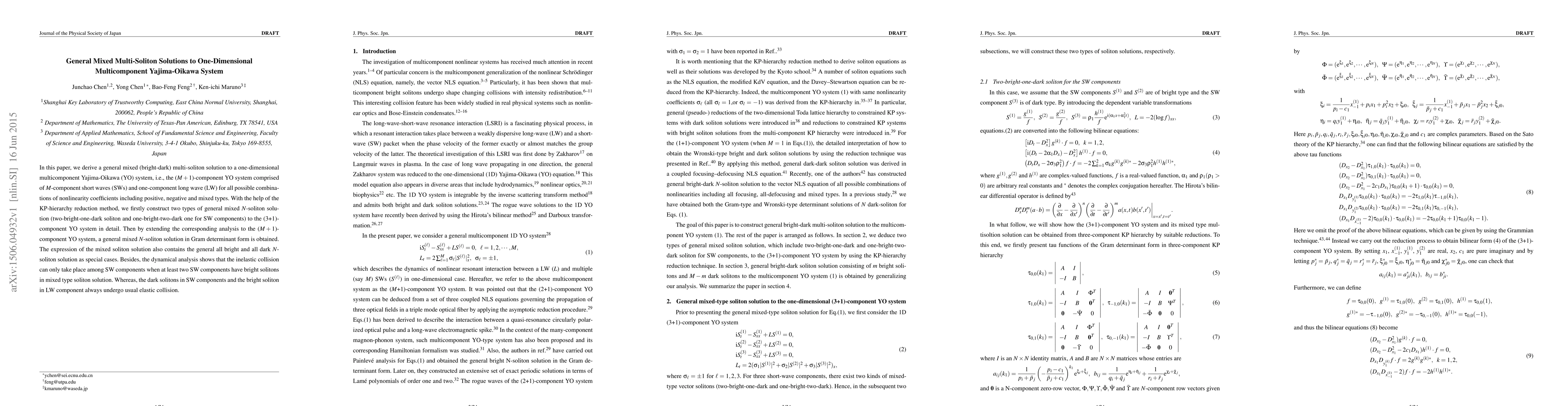 This paper presents general mixed multi-soliton solutions for the one-dimensional multicomponent Yajima-Oikawa system, using the KP-hierarchy reduction method. It provides a detailed construction of specific mixed soliton solutions and extends the analysis to a general form applicable to all nonlinearity coefficient types.
