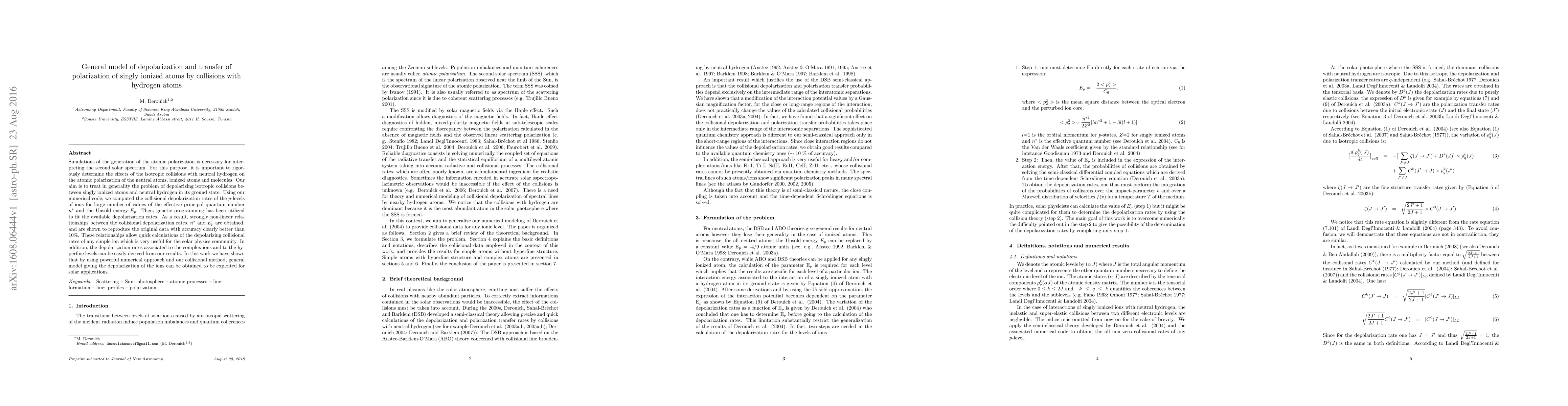 This paper develops a general model for the depolarization of singly ionized atoms through collisions with neutral hydrogen, using numerical simulations and genetic programming. The model provides accurate, non-linear relationships for calculating collisional depolarization rates, which are crucial for interpreting the second solar spectrum and will benefit the solar physics community.