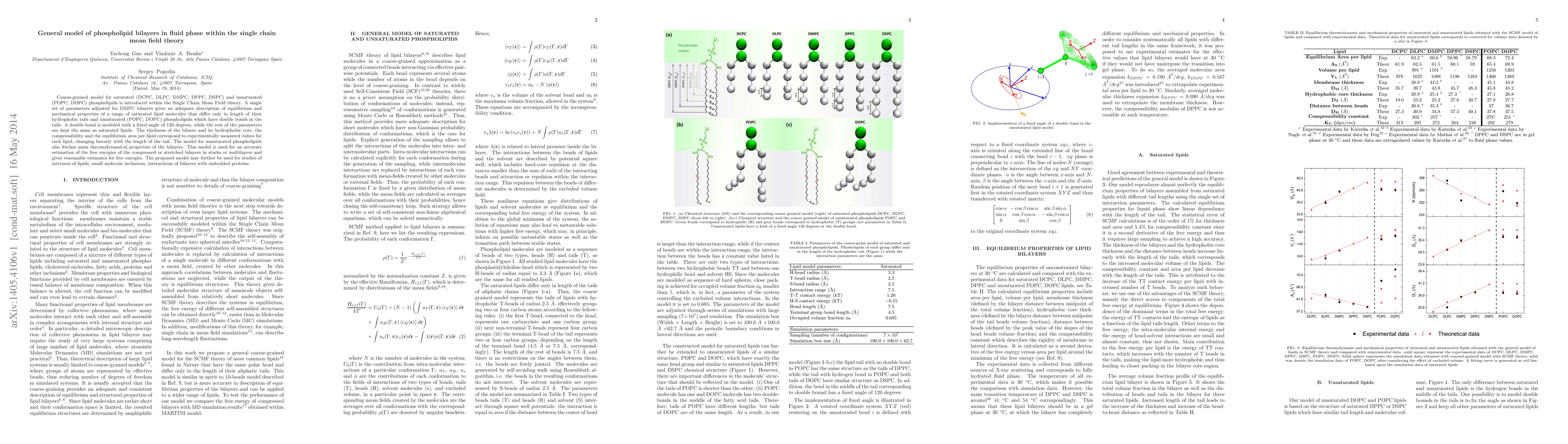 This paper introduces a coarse-grained model for various phospholipids within the Single Chain Mean Field theory, showing that a single set of parameters can describe the equilibrium and mechanical properties of both saturated and unsaturated phospholipids. The model accurately estimates the free energies of compressed or stretched bilayers and can be used for further studies on lipid mixtures and bilayer interactions.
