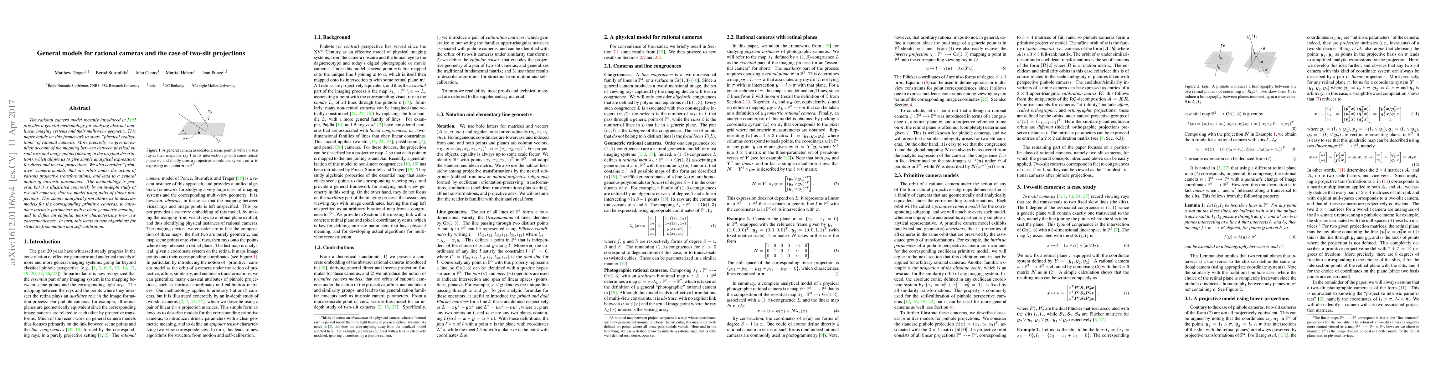 The rational camera model recently introduced in [19] provides a general methodology for studying abstract nonlinear imaging systems and their multi-view geometry. This paper builds on this framework to study "physical realizations" of rational cameras. More precisely, we give an explicit account of the mapping between between physical visual rays and image points (missing in the original description), which allows us to give simple analytical expressions for direct and inverse projections. We also consider "primitive" camera models, that are orbits under the action of various projective transformations, and lead to a general notion of intrinsic parameters. The methodology is general, but it is illustrated concretely by an in-depth study of two-slit cameras, that we model using pairs of linear projections. This simple analytical form allows us to describe models for the corresponding primitive cameras, to introduce intrinsic parameters with a clear geometric meaning, and to define an epipolar tensor characterizing two-view correspondences. In turn, this leads to new algorithms for structure from motion and self-calibration.