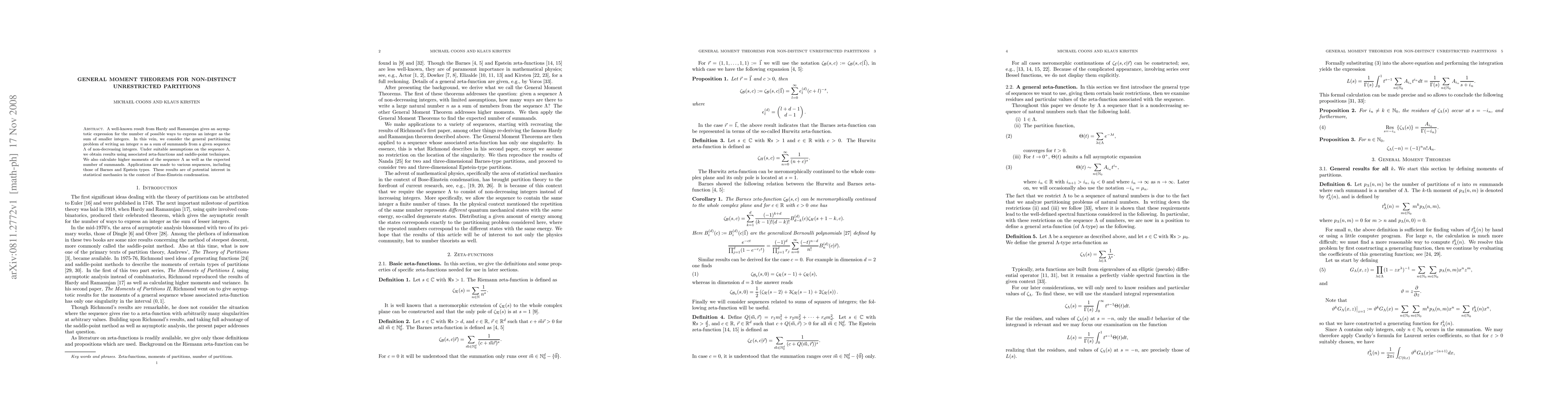 A well-known result from Hardy and Ramanujan gives an asymptotic expression for the number of possible ways to express an integer as the sum of smaller integers. In this vein, we consider the general partitioning problem of writing an integer $n$ as a sum of summands from a given sequence $\gL$ of non-decreasing integers. Under suitable assumptions on the sequence $\gL$, we obtain results using associated zeta-functions and saddle-point techniques. We also calculate higher moments of the sequence $\gL$ as well as the expected number of summands. Applications are made to various sequences, including those of Barnes and Epstein types. These results are of potential interest in statistical mechanics in the context of Bose-Einstein condensation.