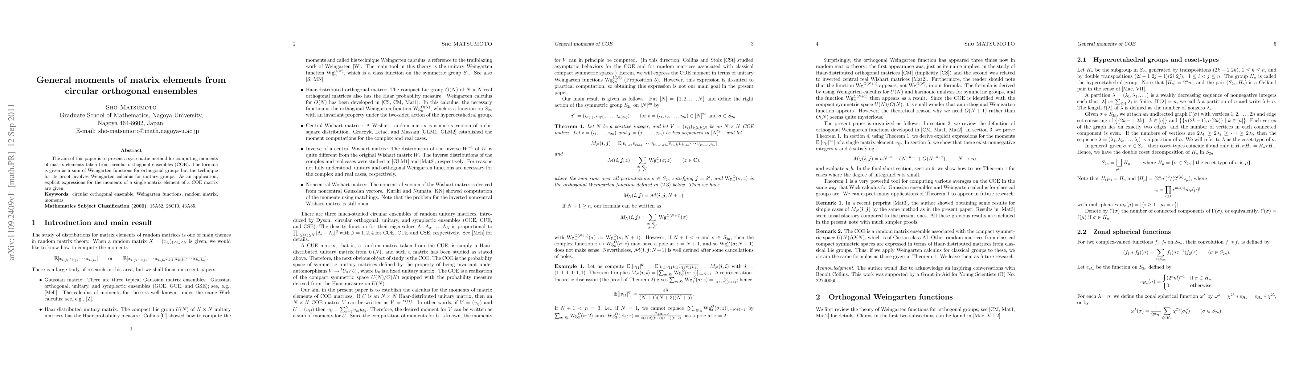 This paper develops a systematic method for computing moments of matrix elements from circular orthogonal ensembles using Weingarten functions, with a proof technique involving Weingarten calculus for unitary groups. Explicit expressions for the moments of a single matrix element of a COE matrix are provided as an application.