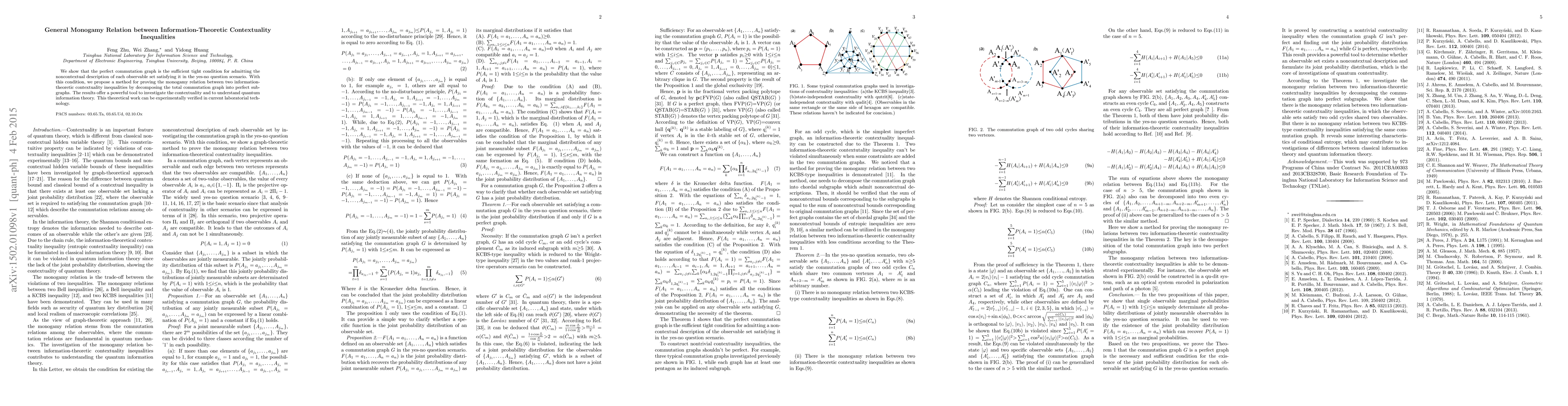 This paper establishes the perfect commutation graph as a criterion for noncontextual descriptions of observable sets, and proposes a method to demonstrate the monogamy relation between contextuality inequalities by decomposing the total commutation graph. This provides a significant theoretical framework for exploring quantum information theory and is experimentally verifiable.