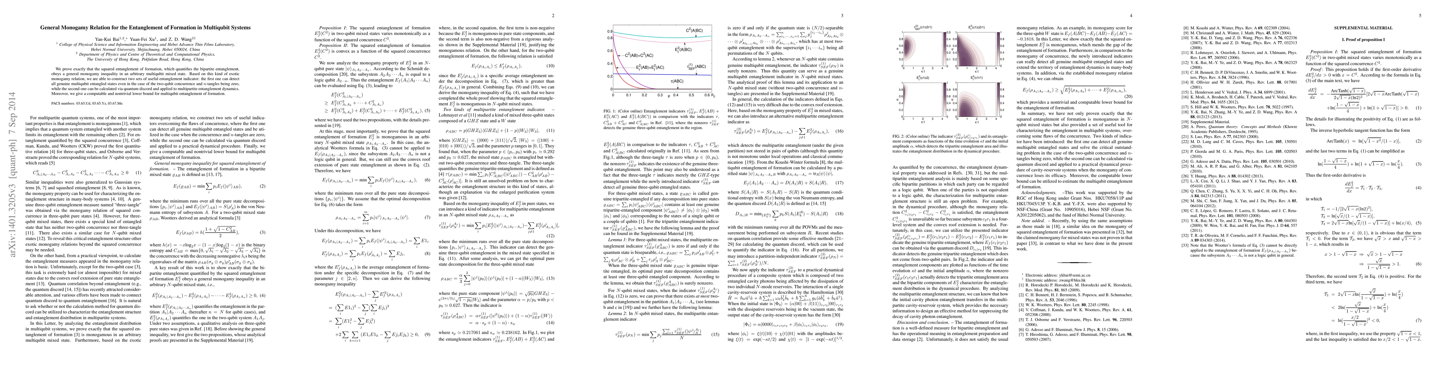 The paper proves a general monogamy inequality for the squared entanglement of formation in multiqubit systems, leading to new entanglement indicators capable of detecting genuine multiqubit entanglement and providing a computable lower bound for multiqubit entanglement of formation.
