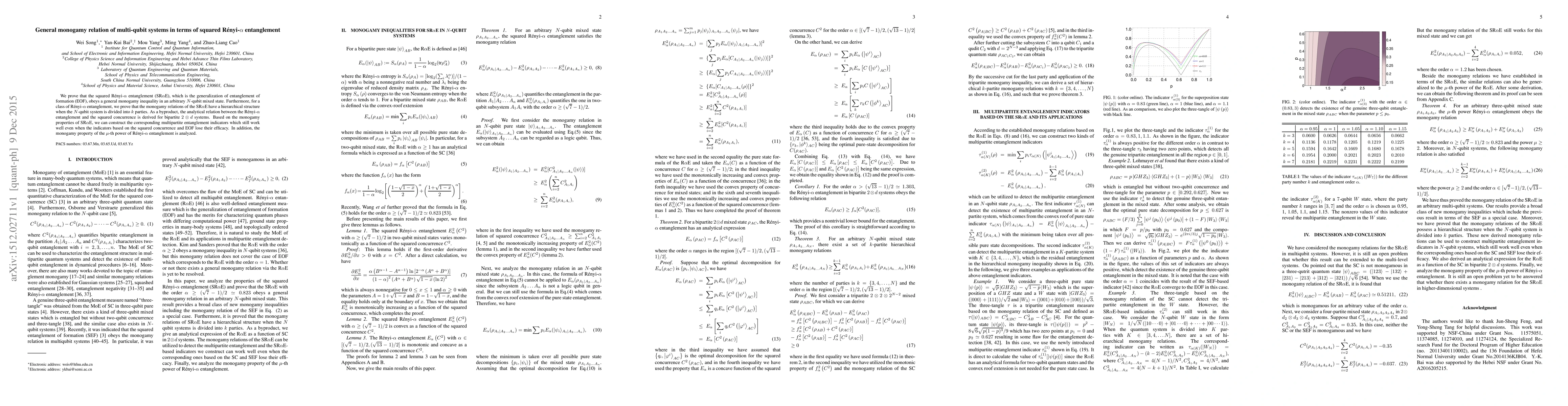 This paper proves the general monogamy inequality for squared Rényi-α entanglement in multi-qubit systems, revealing a hierarchical structure in the monogamy relations when the system is divided into multiple parties. It also derives analytical relations between Rényi-α entanglement and squared concurrence for bipartite systems, and constructs multipartite entanglement indicators based on these properties.
