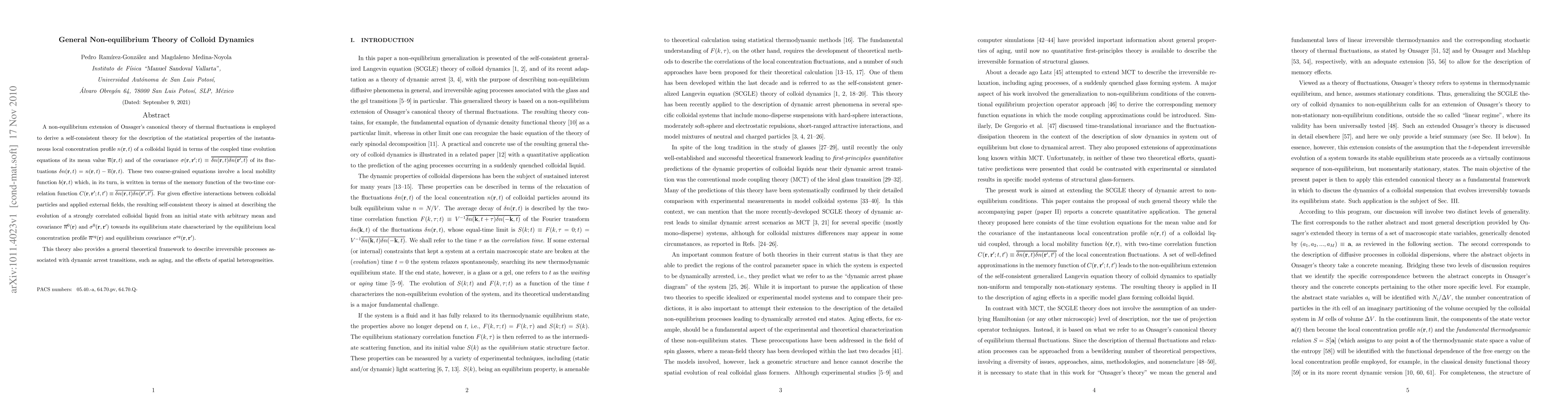 This paper proposes a new theory to describe the dynamics of colloidal liquids under non-equilibrium conditions, aiming to capture their evolution from an initial state towards equilibrium, with implications for understanding dynamic arrest transitions and spatial heterogeneities.