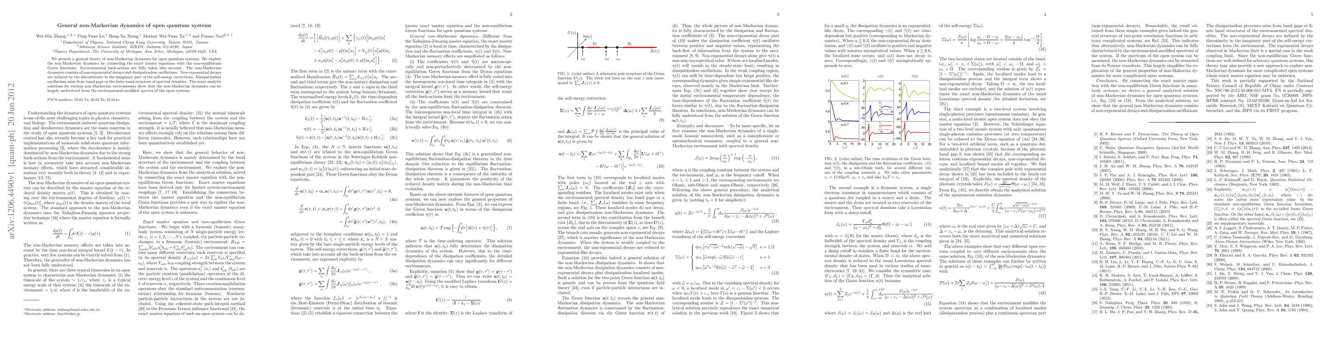 This paper develops a comprehensive theory for non-Markovian dynamics in open quantum systems, linking exact master equations to non-equilibrium Green functions. It highlights non-exponential decays and dissipationless oscillations due to environmental back-actions and spectral density structures.