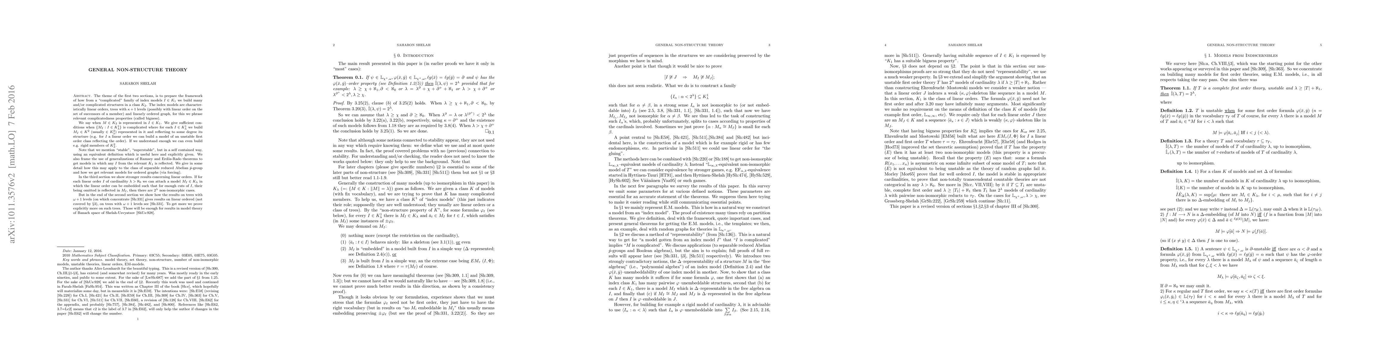 The theme of the first two sections, is to prepare the framework of how from a "complicated" family of index models I in K_1 we build many and/or complicated structures in a class K_2. The index models are characteristically linear orders, trees with kappa+1 levels (possibly with linear order on the set of successors of a member) and linearly ordered graph, for this we phrase relevant complicatedness properties (called bigness). We say when M in K_2 is represented in I in K_1. We give sufficient conditions when {M_I:I\in K^1_\lambda} is complicated where for each I in K^1_lambda we build M_I in K^2 (usually in K^2_lambda) represented in it and reflecting to some degree its structure (e.g. for I a linear order we can build a model of an unstable first order class reflecting the order). If we understand enough we can even build e.g. rigid members of K^2_lambda. Note that we mention "stable", "superstable", but in a self contained way, using an equivalent definition which is useful here and explicitly given. We also frame the use of generalizations of Ramsey and Erdos-Rado theorems to get models in which any I from the relevant K_1 is reflected. We give in some detail how this may apply to the class of separable reduced Abelian p-group and how we get relevant models for ordered graphs (via forcing). In the third section we show stronger results concerning linear orders. If for each linear order I of cardinality lambda>aleph_0 we can attach a model M_I in K_lambda in which the linear order can be embedded so that for enough cuts of I, their being omitted is reflected in M_I, then there are 2^lambda non-isomorphic cases.