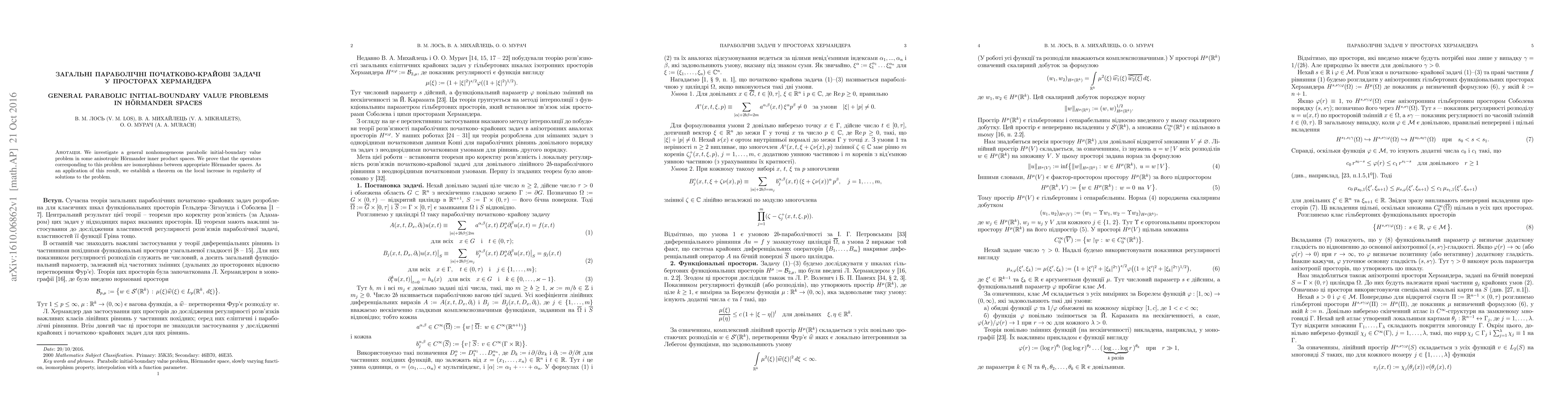 We investigate a general nonhomogeneous parabolic initial-boundary value problem in some anisotropic H\"ormander inner product spaces. We prove that the operators corresponding to this problem are isomorphisms between appropriate H\"ormander spaces. As an application of this result, we establish a theorem on the local increase in regularity of solutions to the problem.