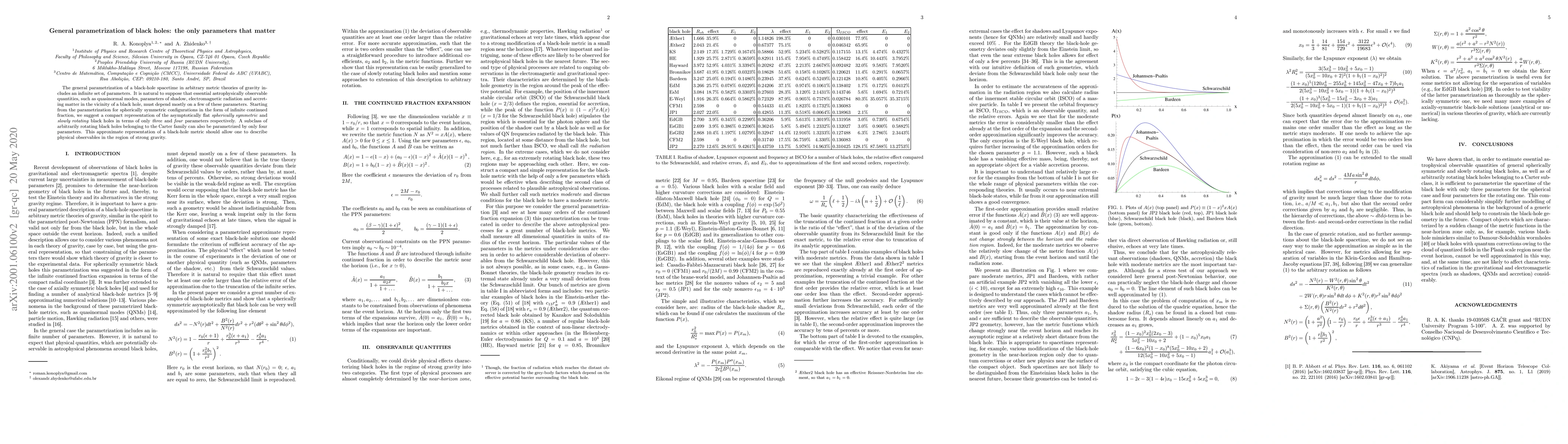 This paper proposes a compact parametrization of black holes in terms of only three or four parameters for spherically symmetric and slowly rotating cases, respectively, simplifying the description of astrophysically observable quantities like quasinormal modes and shadow parameters. This approach aims to facilitate the study of physical phenomena in strong gravitational fields.