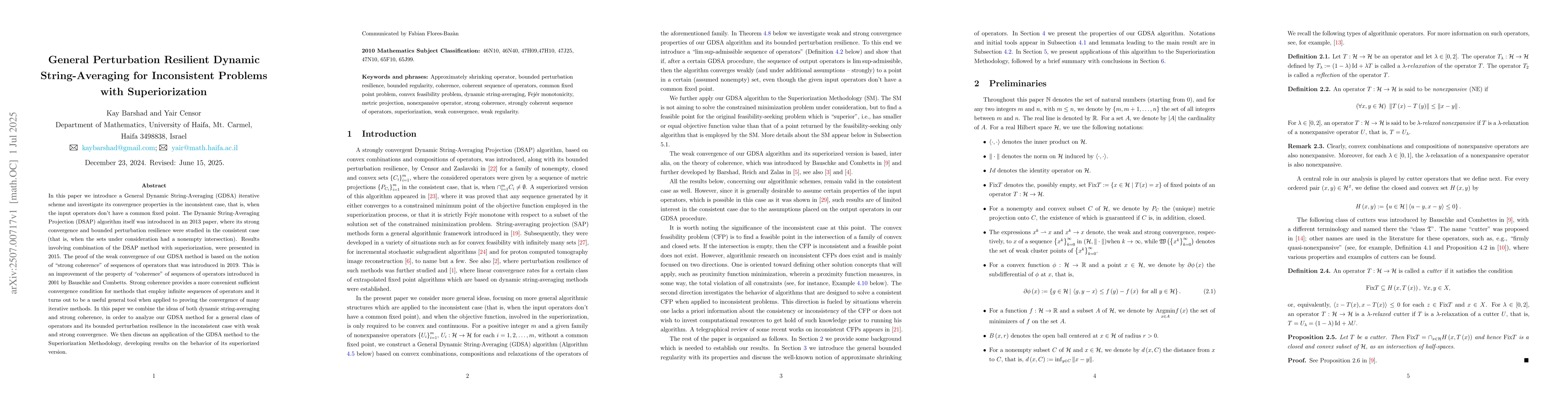 In this paper we introduce a General Dynamic String-Averaging (GDSA) iterative scheme and investigate its convergence properties in the inconsistent case, that is, when the input operators don't have a common fixed point. The Dynamic String-Averaging Projection (DSAP) algorithm itself was introduced in an 2013 paper, where its strong convergence and bounded perturbation resilience were studied in the consistent case (that is, when the sets under consideration had a nonempty intersection). Results involving combination of the DSAP method with superiorization, were presented in 2015. The proof of the weak convergence of our GDSA method is based on the notion of "strong coherence" of sequences of operators that was introduced in 2019. This is an improvement of the property of "coherence" of sequences of operators introduced in 2001 by Bauschke and Combettes. Strong coherence provides a more convenient sufficient convergence condition for methods that employ infinite sequences of operators and it turns out to be a useful general tool when applied to proving the convergence of many iterative methods. In this paper we combine the ideas of both dynamic string-averaging and strong coherence, in order to analyze our GDSA method for a general class of operators and its bounded perturbation resilience in the inconsistent case with weak and strong convergence. We then discuss an application of the GDSA method to the Superiorization Methodology, developing results on the behavior of its superiorized version.