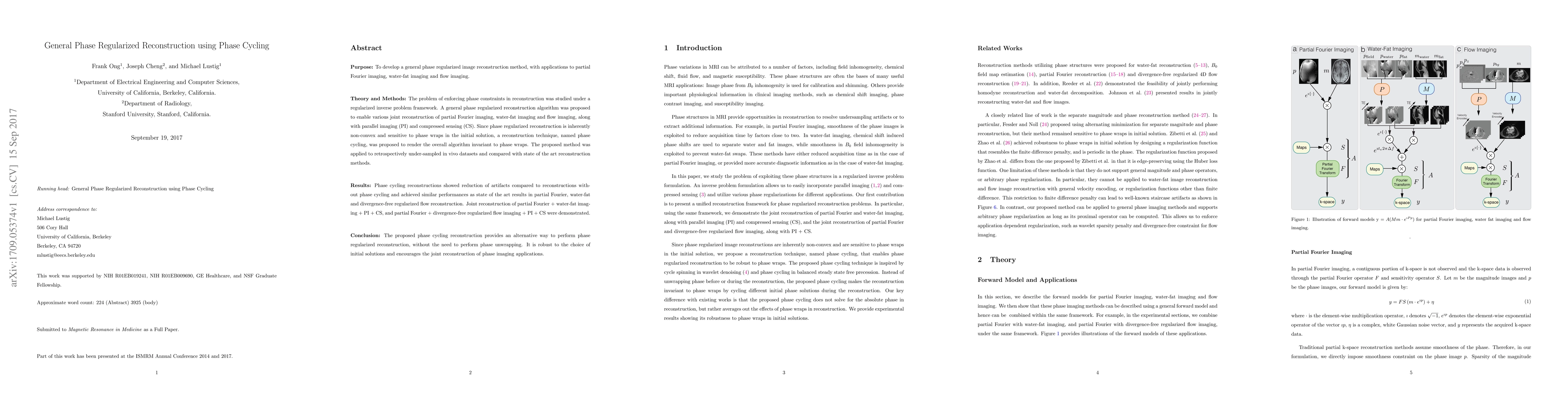 This paper proposes a general phase regularized reconstruction method using phase cycling to address phase constraints in imaging applications like partial Fourier, water-fat, and flow imaging. The method effectively reduces artifacts and achieves comparable performance to state-of-the-art techniques, demonstrating robustness and enabling joint reconstruction of multiple imaging modalities.