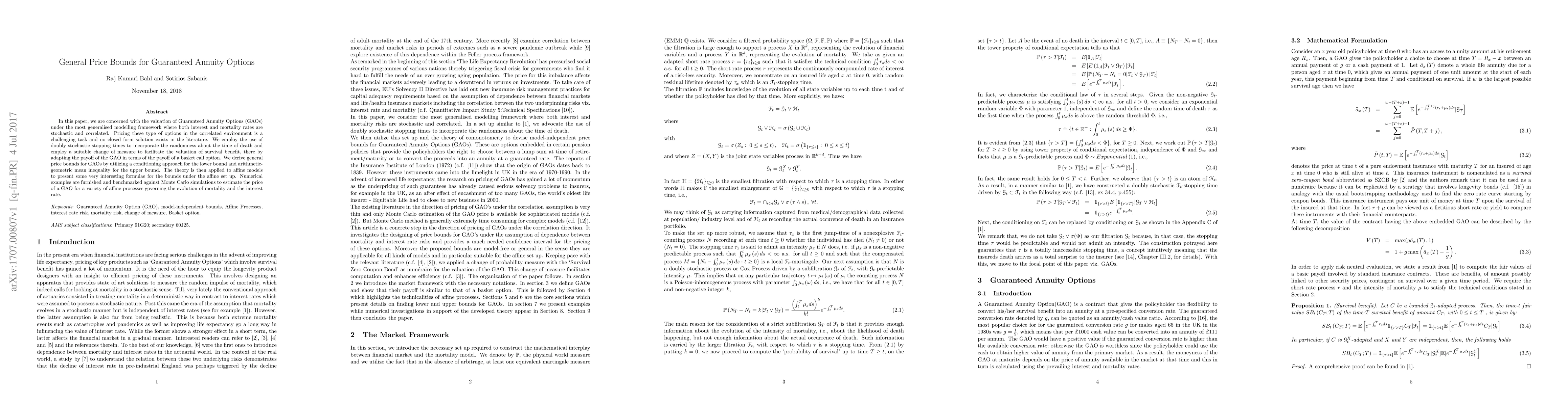In this paper, we are concerned with the valuation of Guaranteed Annuity Options (GAOs) under the most generalised modelling framework where both interest and mortality rates are stochastic and correlated. Pricing these type of options in the correlated environment is a challenging task and no closed form solution exists in the literature. We employ the use of doubly stochastic stopping times to incorporate the randomness about the time of death and employ a suitable change of measure to facilitate the valuation of survival benefit, there by adapting the payoff of the GAO in terms of the payoff of a basket call option. We derive general price bounds for GAOs by utilizing a conditioning approach for the lower bound and arithmetic-geometric mean inequality for the upper bound. The theory is then applied to affine models to present some very interesting formulae for the bounds under the affine set up. Numerical examples are furnished and benchmarked against Monte Carlo simulations to estimate the price of a GAO for a variety of affine processes governing the evolution of mortality and the interest rate.
