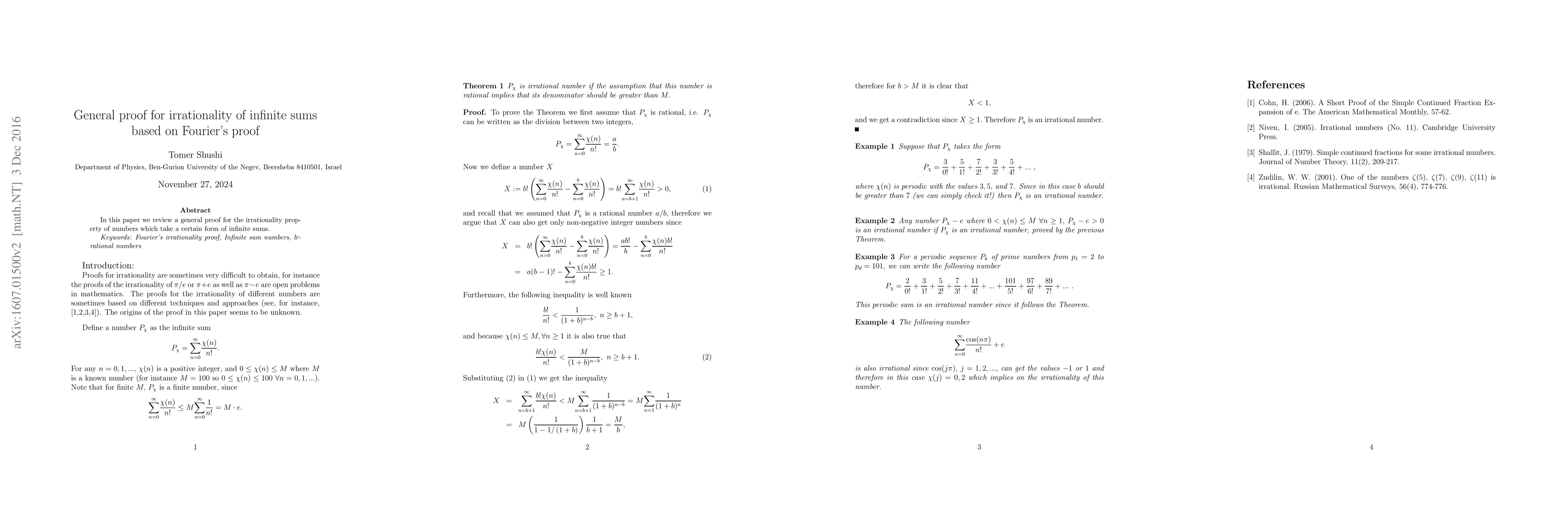 In this paper we review a general proof for the irrationality property of numbers which take a certain form of infinite sums.