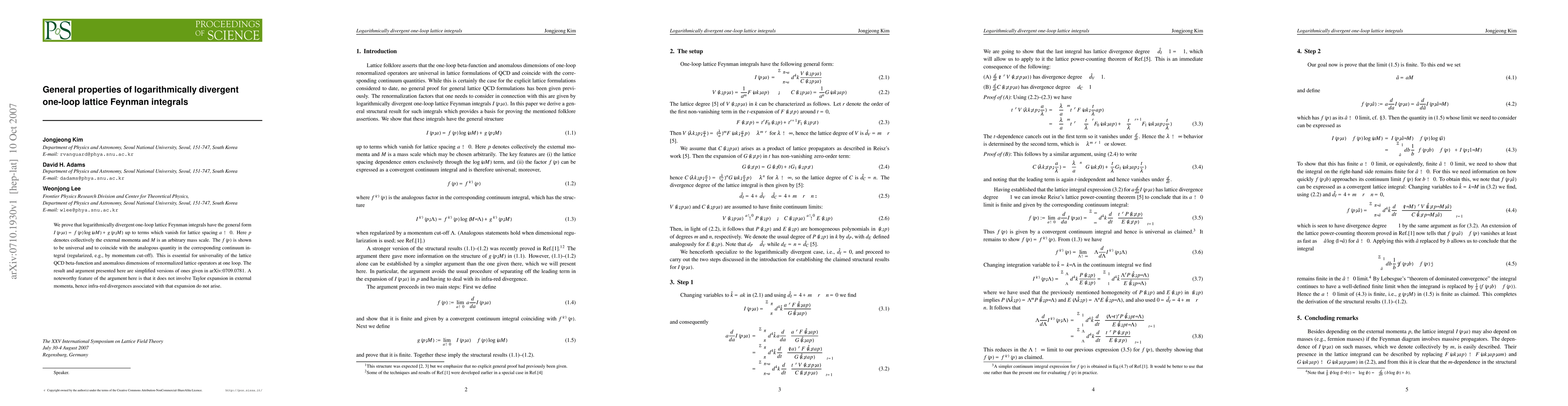 Researchers prove that logarithmically divergent one-loop lattice Feynman integrals follow a universal form, allowing for universality of the lattice QCD beta-function and anomalous dimensions.