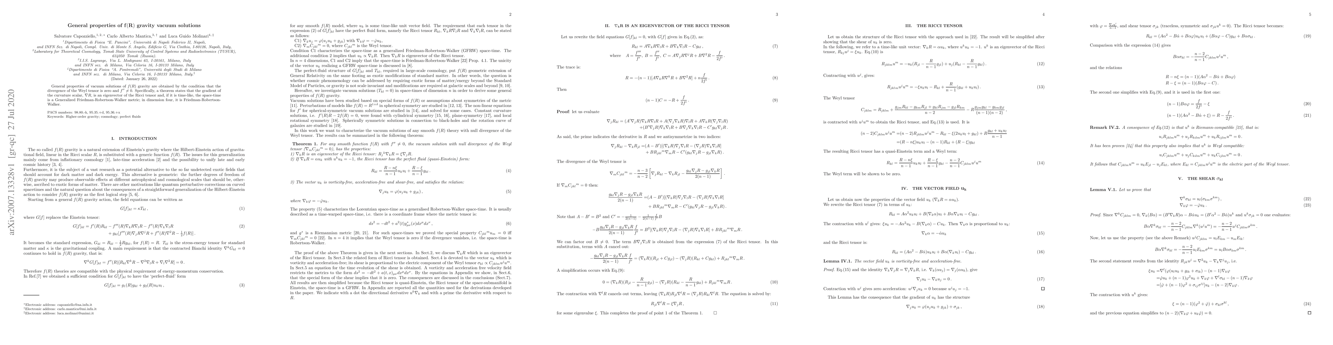 General properties of vacuum solutions of $f(R)$ gravity are obtained by the condition that the divergence of the Weyl tensor is zero and $f''\neq 0$. Specifically, a theorem states that the gradient of the curvature scalar, $\nabla R$, is an eigenvector of the Ricci tensor and, if it is time-like, the space-time is a Generalized Friedman-Robertson-Walker metric; in dimension four, it is Friedman-Robertson-Walker.