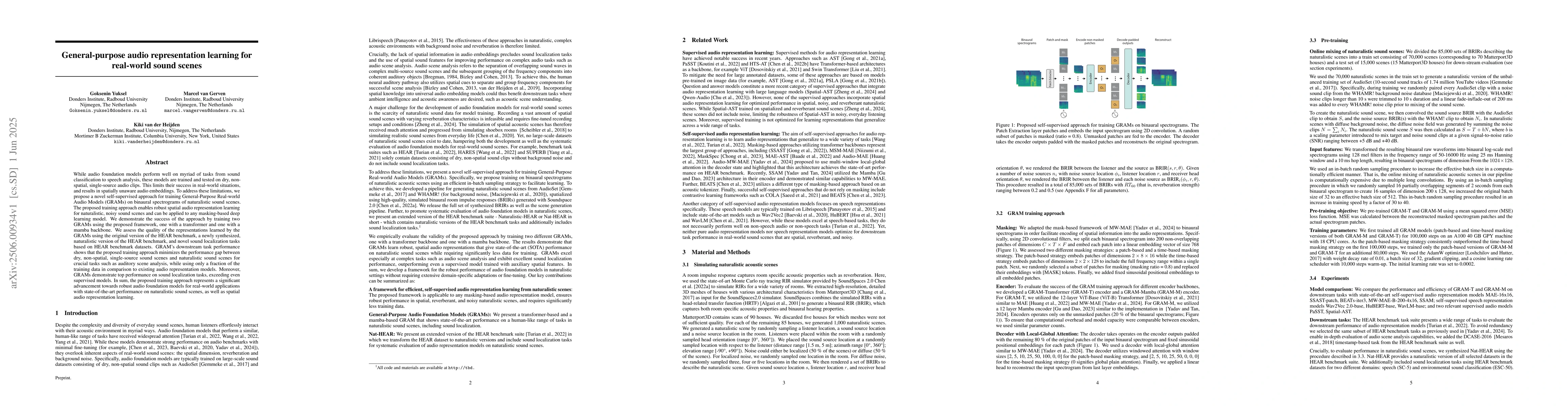 The research introduces General-Purpose, Real-world Audio Models (GRAMs) to tackle the limitations of existing audio foundation models in handling real-world, noisy sound scenes. GRAMs, trained via a novel self-supervised approach, outperform current models in tasks like auditory scene analysis and sound localization, even surpassing supervised models in localization, demonstrating significant progress towards robust audio foundation models for real-world applications.