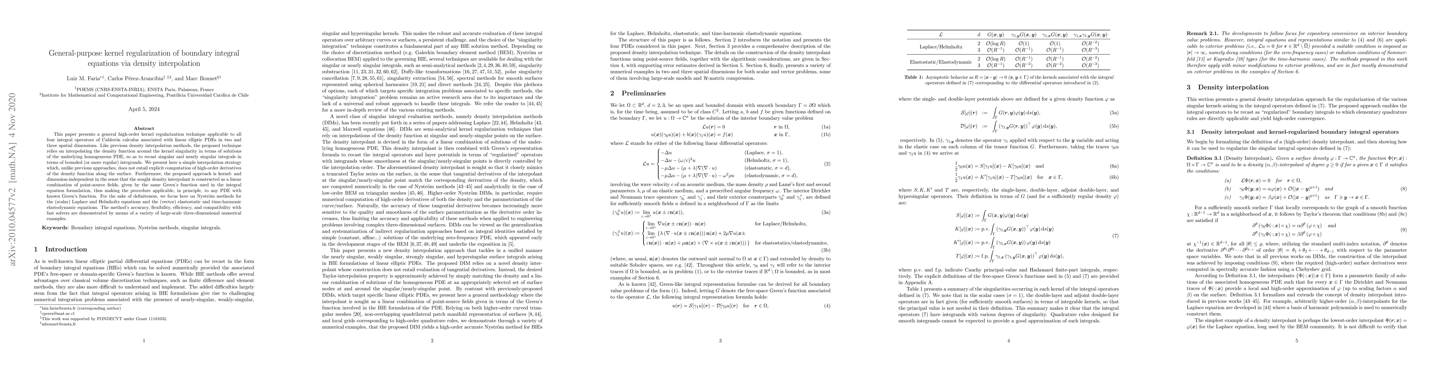 This paper presents a general high-order kernel regularization technique applicable to all four integral operators of Calder\'on calculus associated with linear elliptic PDEs in two and three spatial dimensions. Like previous density interpolation methods, the proposed technique relies on interpolating the density function around the kernel singularity in terms of solutions of the underlying homogeneous PDE, so as to recast singular and nearly singular integrals in terms of bounded (or more regular) integrands. We present here a simple interpolation strategy which, unlike previous approaches, does not entail explicit computation of high-order derivatives of the density function along the surface. Furthermore, the proposed approach is kernel- and dimension-independent in the sense that the sought density interpolant is constructed as a linear combination of point-source fields, given by the same Green's function used in the integral equation formulation, thus making the procedure applicable, in principle, to any PDE with known Green's function. For the sake of definiteness, we focus here on Nystr\"om methods for the (scalar) Laplace and Helmholtz equations and the (vector) elastostatic and time-harmonic elastodynamic equations. The method's accuracy, flexibility, efficiency, and compatibility with fast solvers are demonstrated by means of a variety of large-scale three-dimensional numerical examples.