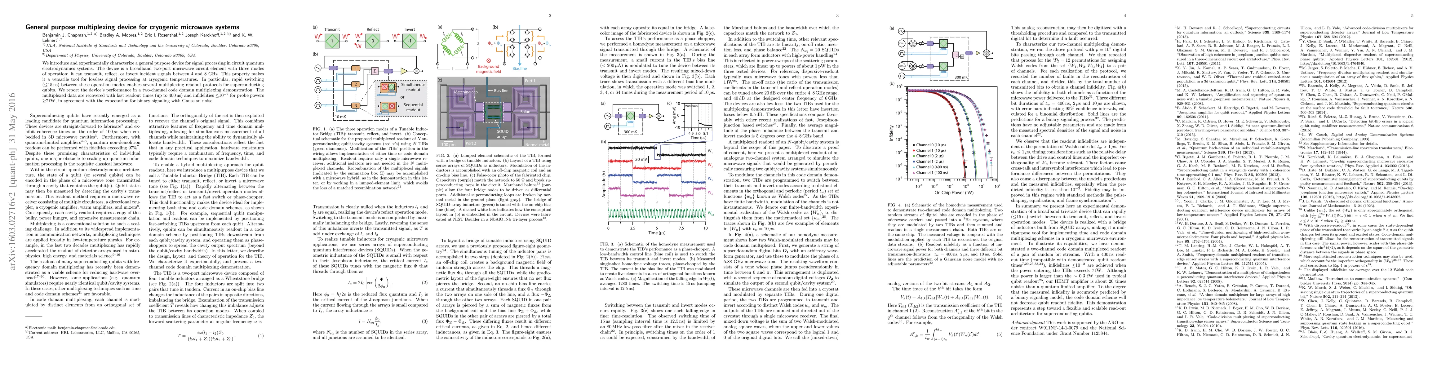 We introduce and experimentally characterize a general purpose device for signal processing in circuit quantum electrodynamics systems. The device is a broadband two-port microwave circuit element with three modes of operation: it can transmit, reflect, or invert incident signals between 4 and 8 GHz. This property makes it a versatile tool for lossless signal processing at cryogenic temperatures. In particular, rapid switching (less than or equal to 15 ns) between these operation modes enables several multiplexing readout protocols for superconducting qubits. We report the device's performance in a two-channel code domain multiplexing demonstration. The multiplexed data are recovered with fast readout times (up to 400 ns) and infidelities less than 0.01 for probe powers greater than 7 fW, in agreement with the expectation for binary signaling with Gaussian noise.