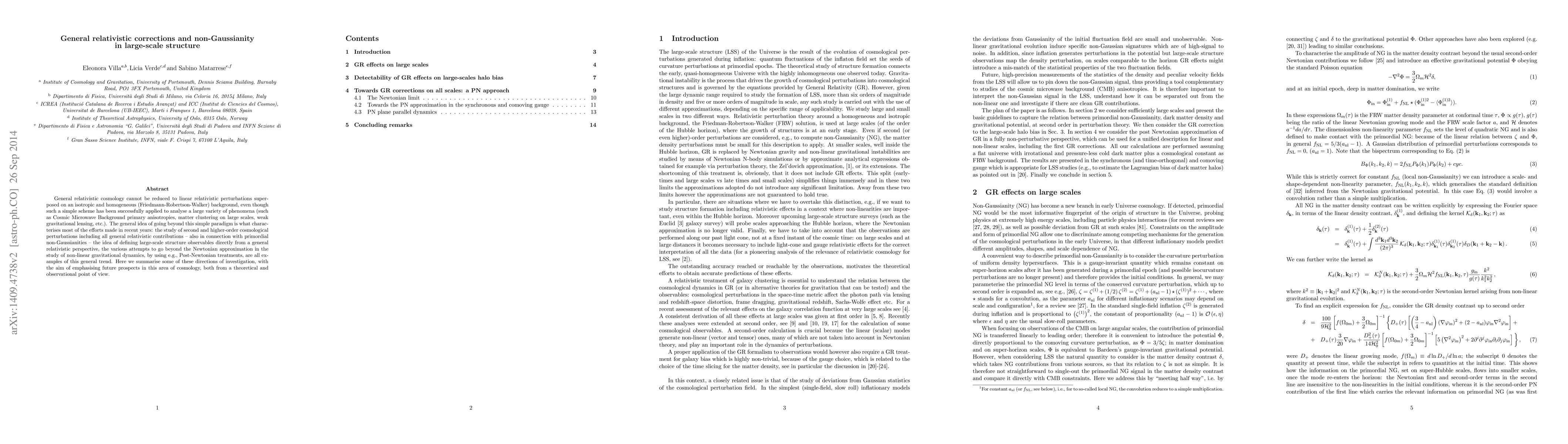 General relativistic cosmology cannot be reduced to linear relativistic perturbations superposed on an isotropic and homogeneous (Friedmann-Robertson-Walker) background, even though such a simple scheme has been successfully applied to analyse a large variety of phenomena (such as Cosmic Microwave Background primary anisotropies, matter clustering on large scales, weak gravitational lensing, etc.). The general idea of going beyond this simple paradigm is what characterises most of the efforts made in recent years: the study of second and higher-order cosmological perturbations including all general relativistic contributions -- also in connection with primordial non-Gaussianities -- the idea of defining large-scale structure observables directly from a general relativistic perspective, the various attempts to go beyond the Newtonian approximation in the study of non-linear gravitational dynamics, by using e.g., Post-Newtonian treatments, are all examples of this general trend. Here we summarise some of these directions of investigation, with the aim of emphasising future prospects in this area of cosmology, both from a theoretical and observational point of view.
