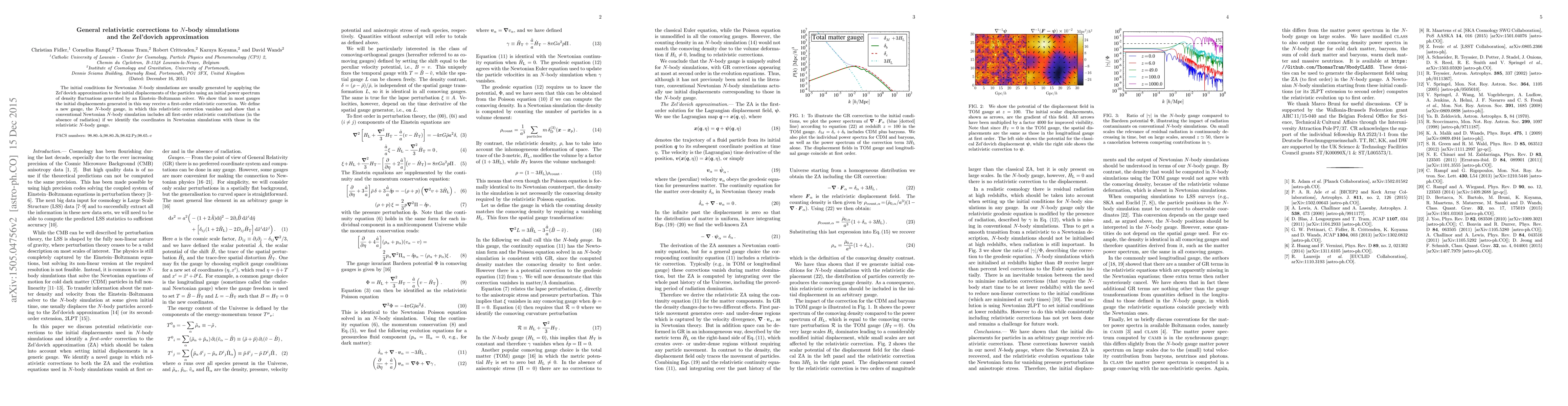 This paper discusses the generation of initial conditions for Newtonian $N$-body simulations using the Zel'dovich approximation, revealing that these conditions receive first-order relativistic corrections. It introduces the $N$-body gauge where these corrections vanish, ensuring that Newtonian simulations accurately include first-order relativistic effects when coordinates are aligned with the relativistic $N$-body gauge.