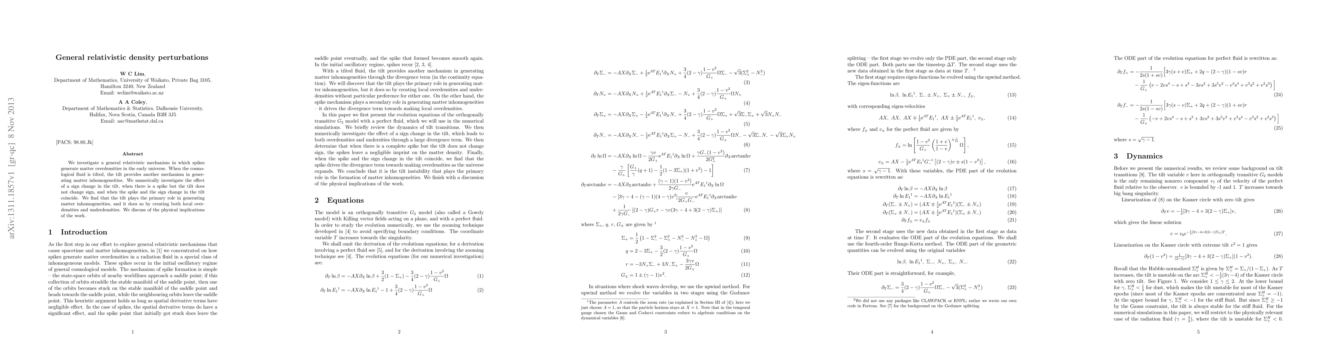 We investigate a general relativistic mechanism in which spikes generate matter overdensities in the early universe. When the cosmological fluid is tilted, the tilt provides another mechanism in generating matter inhomogeneities. We numerically investigate the effect of a sign change in the tilt, when there is a spike but the tilt does not change sign, and when the spike and the sign change in the tilt coincide. We find that the tilt plays the primary role in generating matter inhomogeneities, and it does so by creating both local overdensities and underdensities. We discuss of the physical implications of the work.