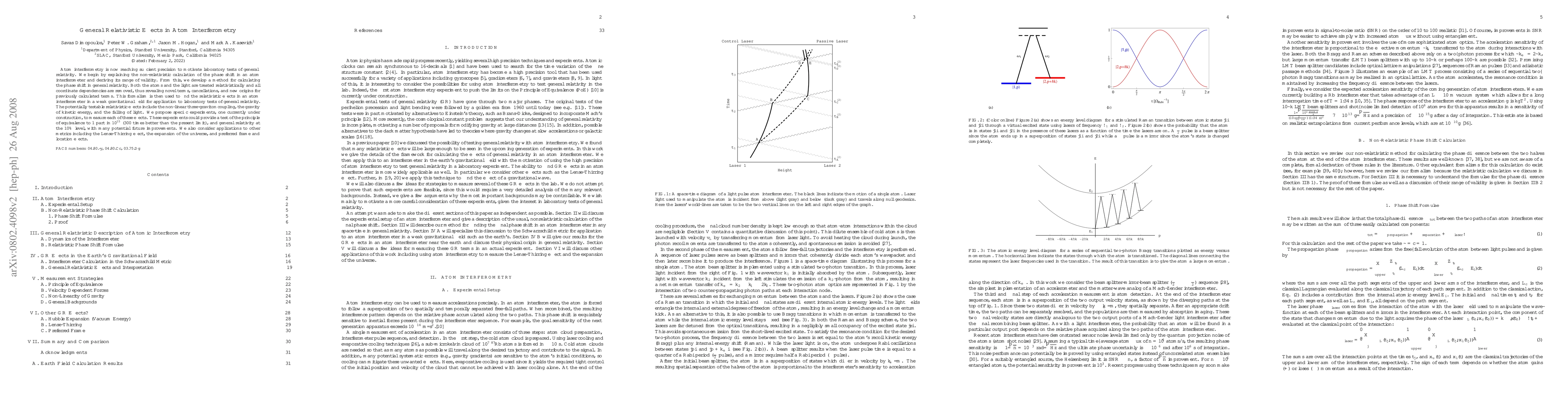 This paper develops a method to calculate relativistic phase shifts in atom interferometry, enabling precise tests of general relativity. Proposed experiments aim to test the principle of equivalence and general relativity at unprecedented levels of accuracy, with potential applications to various relativistic effects.