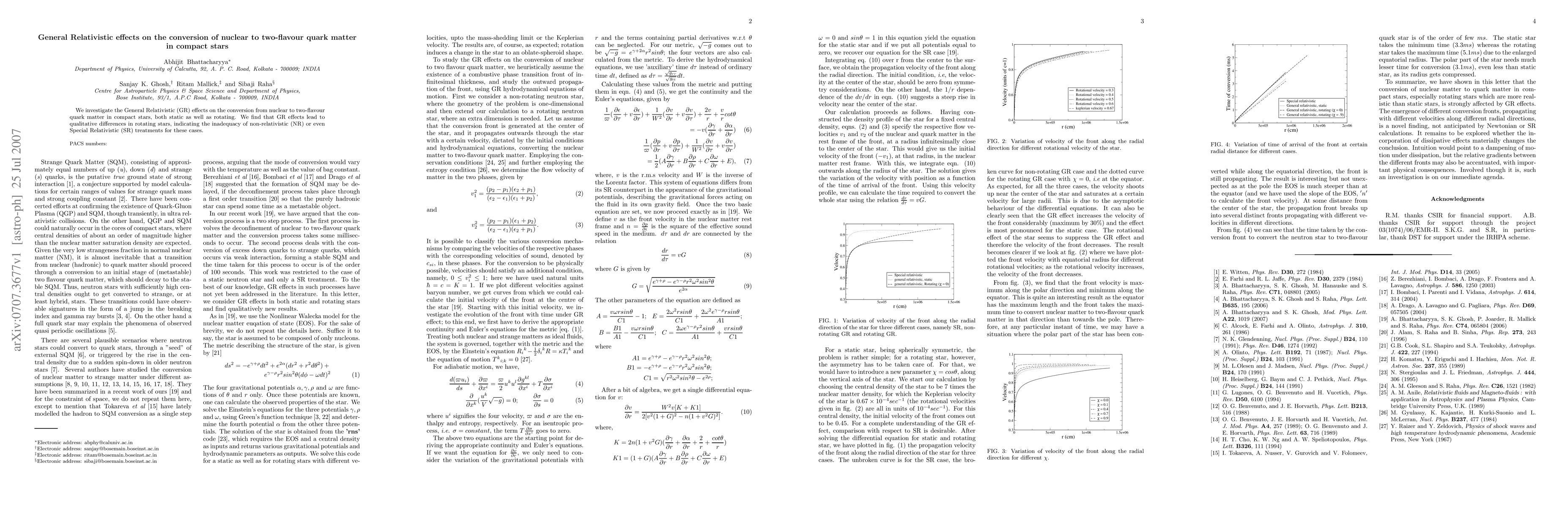 This research paper investigates how general relativity affects the conversion of nuclear matter to quark matter in compact stars, revealing qualitative differences in rotating stars that require more advanced treatments than non-relativistic or special relativistic models.