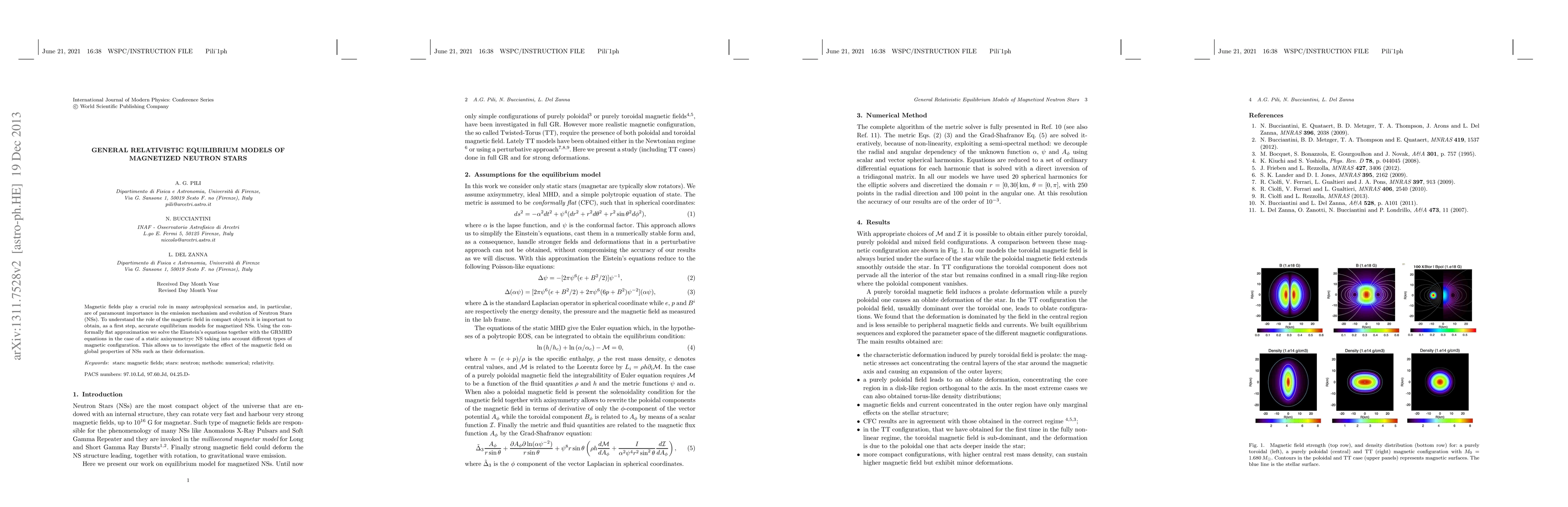 Magnetic fields play a crucial role in many astrophysical scenarios and, in particular, are of paramount importance in the emission mechanism and evolution of Neutron Stars (NSs). To understand the role of the magnetic field in compact objects it is important to obtain, as a first step, accurate equilibrium models for magnetized NSs. Using the conformally flat approximation we solve the Einstein's equations together with the GRMHD equations in the case of a static axisymmetryc NS taking into account different types of magnetic configuration. This allows us to investigate the effect of the magnetic field on global properties of NSs such as their deformation.