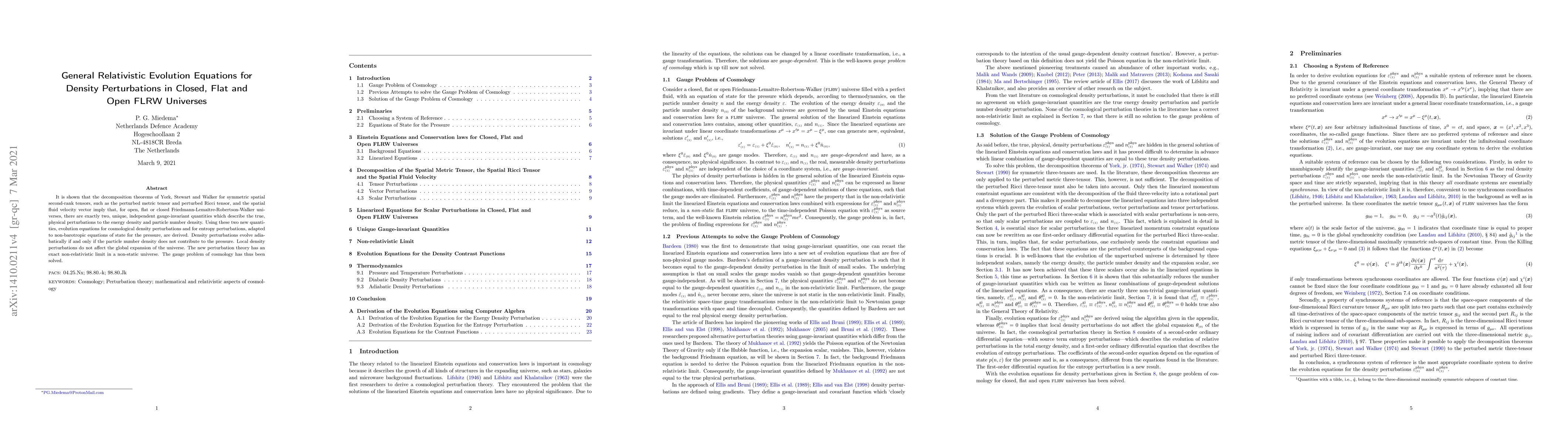 This paper derives evolution equations for density perturbations in FLRW universes using York, Stewart, and Walker's decomposition theorems, identifying two unique gauge-invariant quantities that describe physical perturbations. It concludes that local density perturbations do not influence global expansion and solves the gauge problem in cosmology.