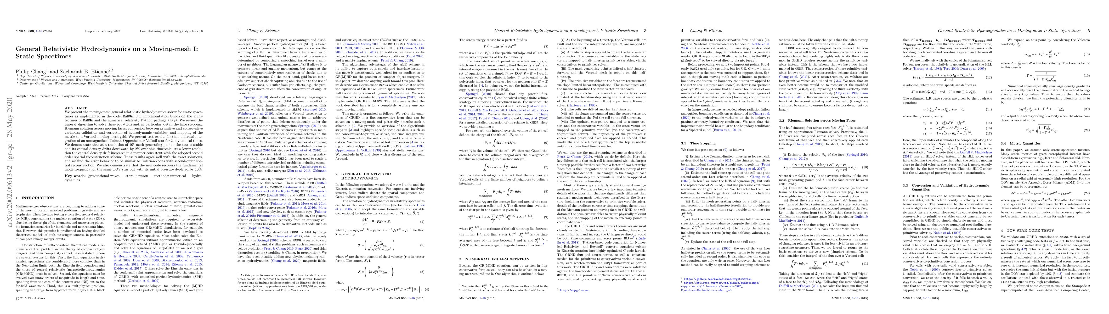 This paper introduces the first moving-mesh general relativistic hydrodynamics solver for static spacetimes, implemented in the MANGA code, and details its algorithm and validation. Test results show stable integration of an unmagnetized Tolman-Oppenheimer-Volkoff star, with error behavior comparable to Eulerian codes.