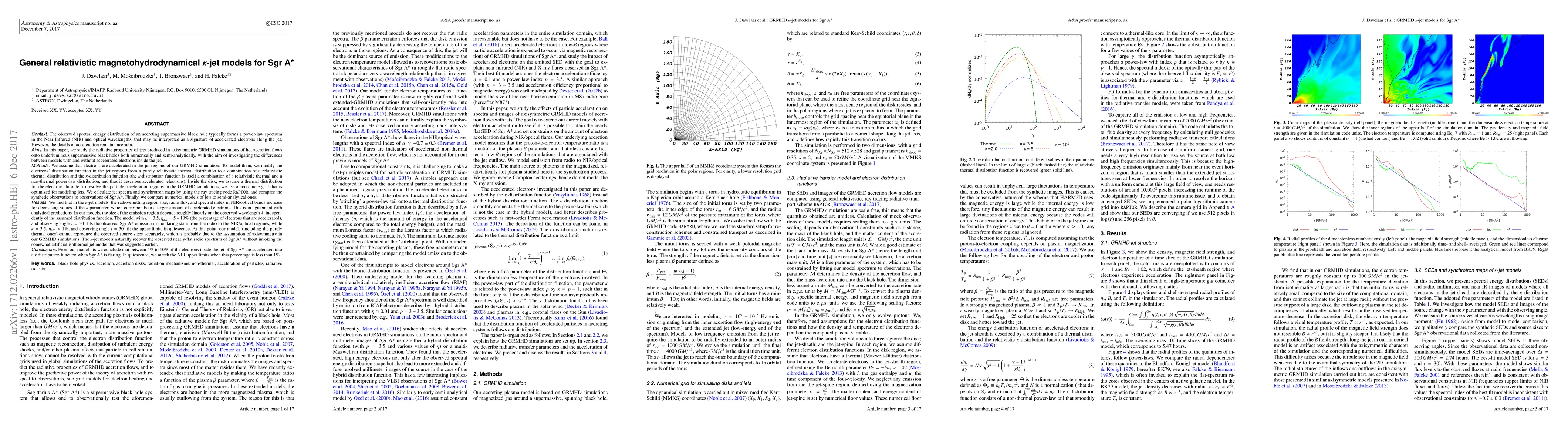 This paper investigates the radiative properties of jets from axisymmetric GRMHD simulations of hot accretion flows onto supermassive black holes, focusing on the impact of accelerated electrons modeled by $\kappa$-distribution functions. The study finds that $\kappa$-jet models with higher $\kappa$ values, indicating more accelerated electrons, better fit the observed spectral energy distribution of Sgr A* in flaring states.
