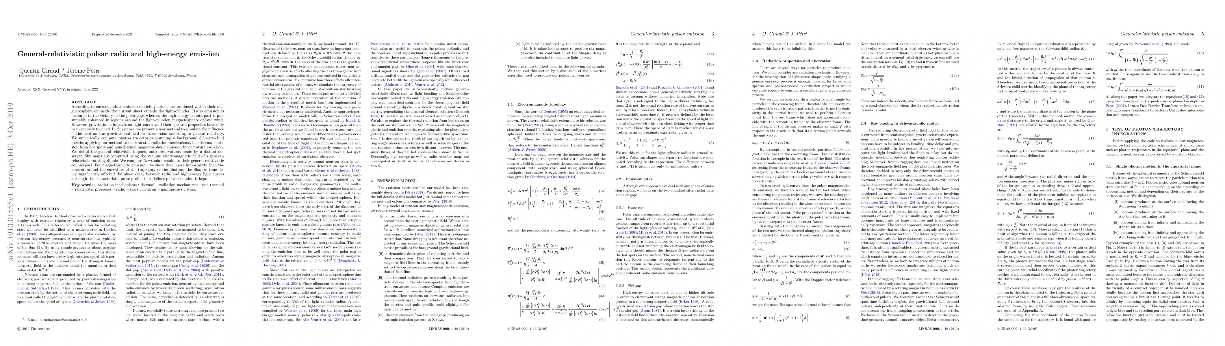 According to current pulsar emission models, photons are produced within their magnetosphere or inside the current sheet outside the light-cylinder. Radio emission is favoured in the vicinity of the polar caps whereas the high-energy counterpart is presumably enhanced in regions around the light-cylinder, magnetosphere or/and wind. However, gravitational impacts on light-curves and their spectral properties have only been sparsely touched. In this paper, we present a new method to simulate the influence of the neutron star gravitational field on its emission according to general relativity. We numerically compute photon trajectories assuming a background Schwarzschild metric, applying our method to neutron star radiation mechanisms, like thermal emission from hot spots and non-thermal magnetospheric emission by curvature radiation. We detail the general-relativistic impacts onto observations made by a distant observer. Sky maps are computed using the vacuum electromagnetic field of a general-relativistic rotating dipole. We compare Newtonian results to their general-relativistic counterpart. For magnetospheric emission, we show that, more importantly than the aberration and the curvature of the trajectory of the photons, the Shapiro time delay significantly affected the phase delay between radio and high-energy light curves although the characteristic pulse profile that defines pulsar emission is kept.