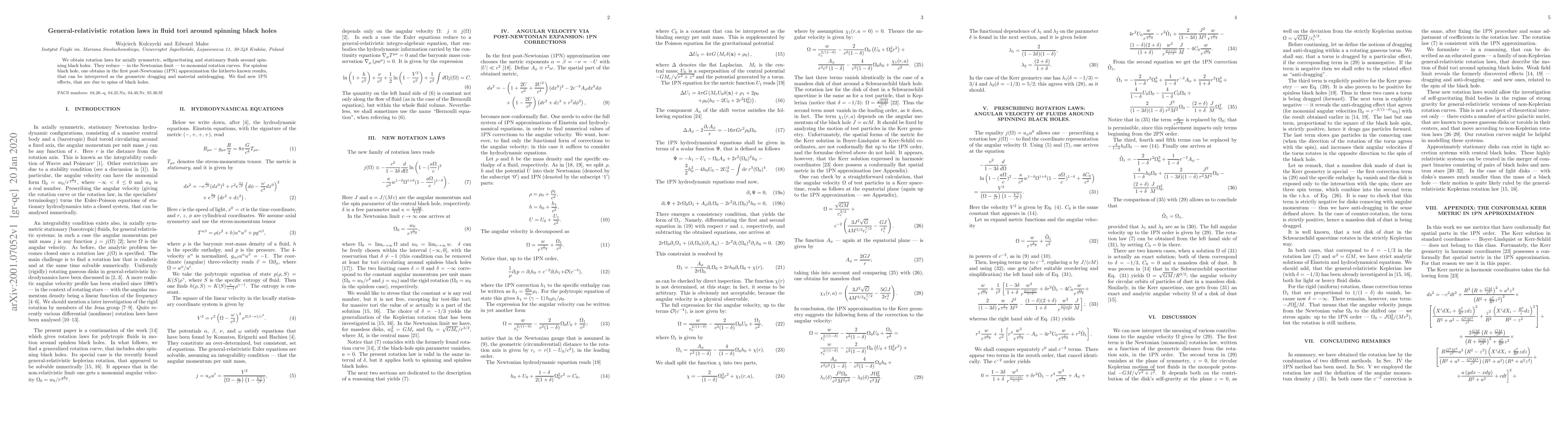 This paper derives general-relativistic rotation laws for stationary, axially symmetric, self-gravitating fluids around spinning black holes, revealing new 1PN effects from black hole spins, while reducing to known Newtonian results for spinless black holes.