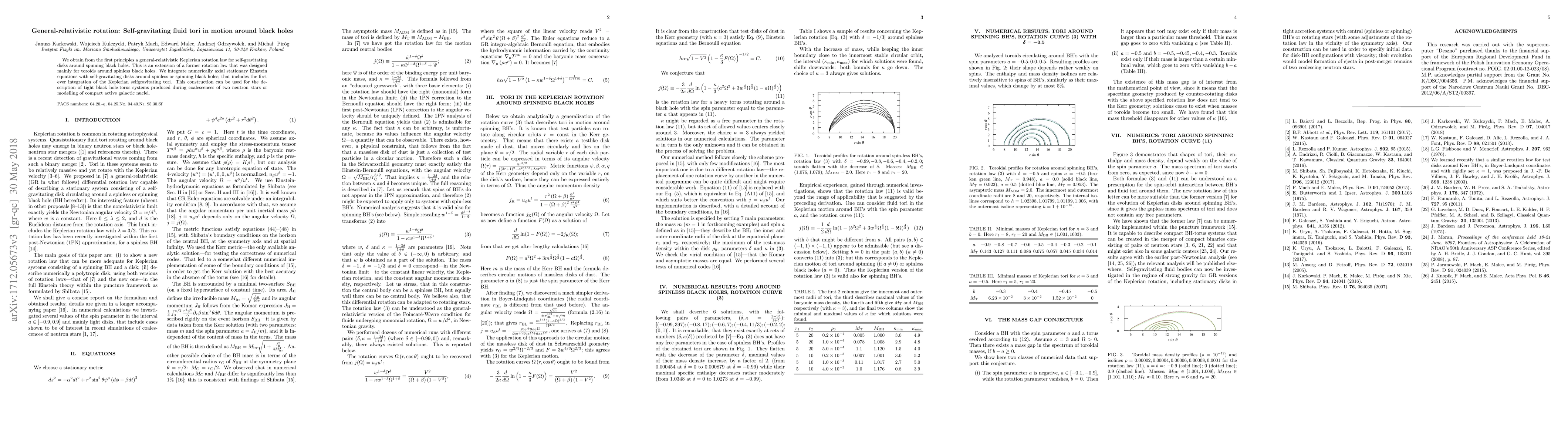 This paper derives a general-relativistic Keplerian rotation law for self-gravitating fluid tori orbiting spinning black holes, extending previous models for toroids around non-spinning black holes. The authors numerically integrate the axial stationary Einstein equations to model these systems, providing insights into black hole-torus interactions during neutron star mergers and active galactic nuclei.