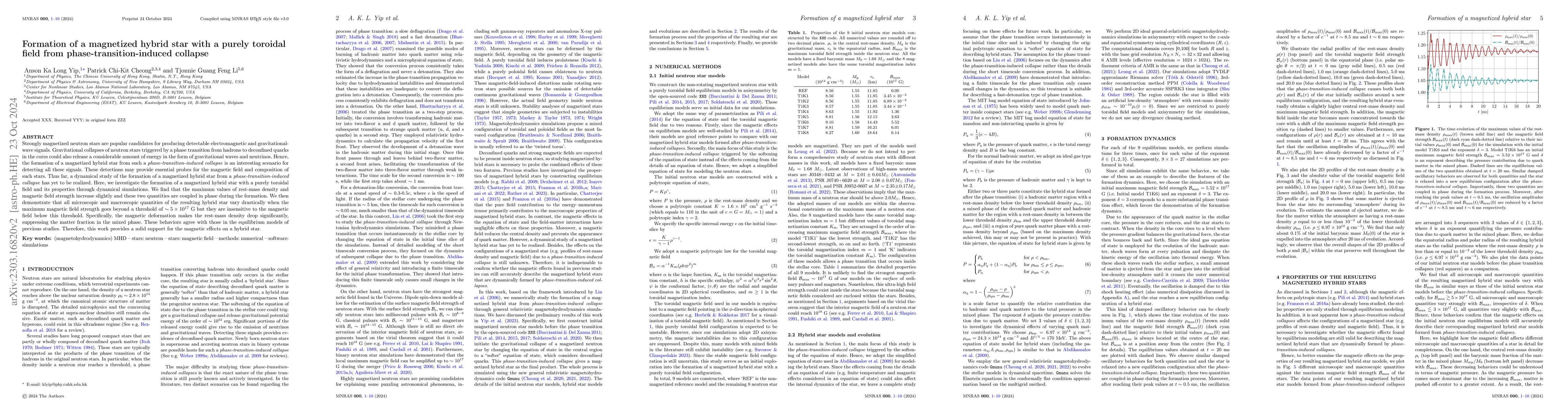 This paper investigates the formation dynamics of magnetized hybrid stars through general-relativistic simulations, finding that significant changes in the star's properties occur when the magnetic field strength exceeds $\sim 5 \times 10^{17}$ G, indicating a strong magnetic influence on the star's density and composition.