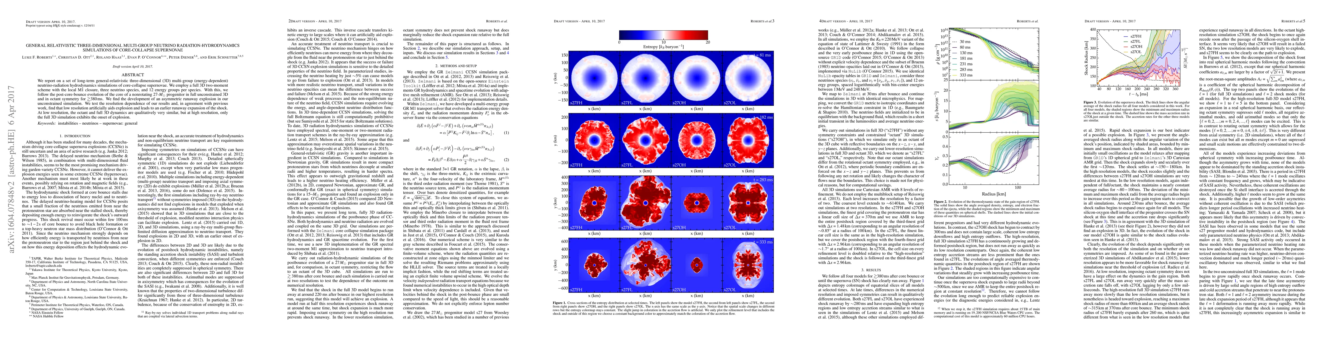 This paper presents detailed 3D multi-group neutrino radiation-hydrodynamics simulations of core-collapse supernovae, revealing an asymmetric runaway explosion in full 3D simulations. It shows that low resolution can artificially promote explosion, while high resolution reveals the true dynamics only in full 3D.