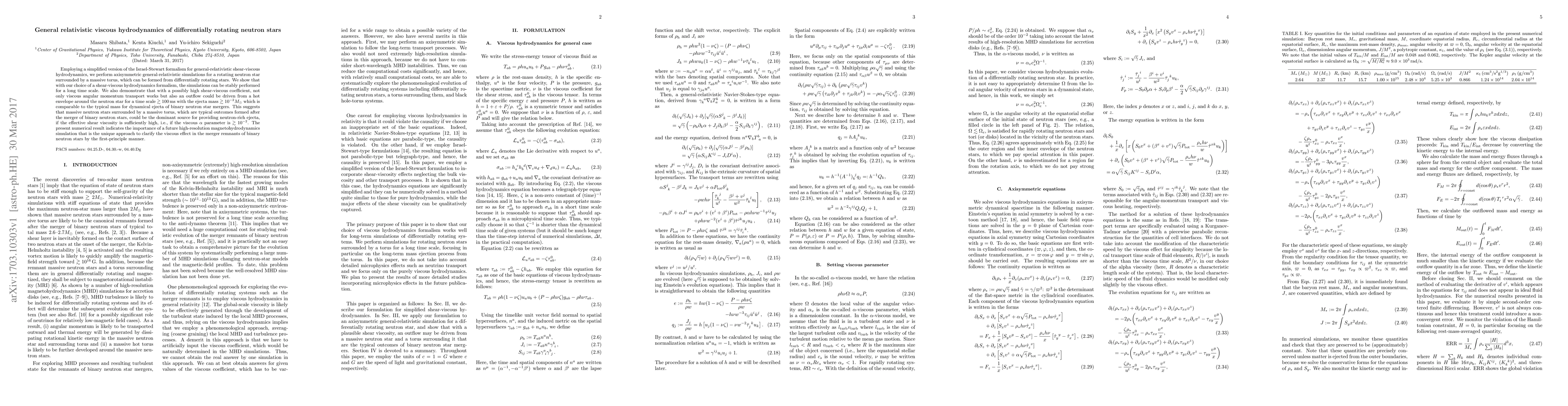 This paper uses a simplified version of the Israel-Stewart formalism to simulate general-relativistic viscous hydrodynamics in differentially rotating neutron stars surrounded by massive tori. The results suggest that high shear viscosity can drive angular momentum transport and outflows, potentially explaining the neutron-rich ejecta from neutron star mergers.