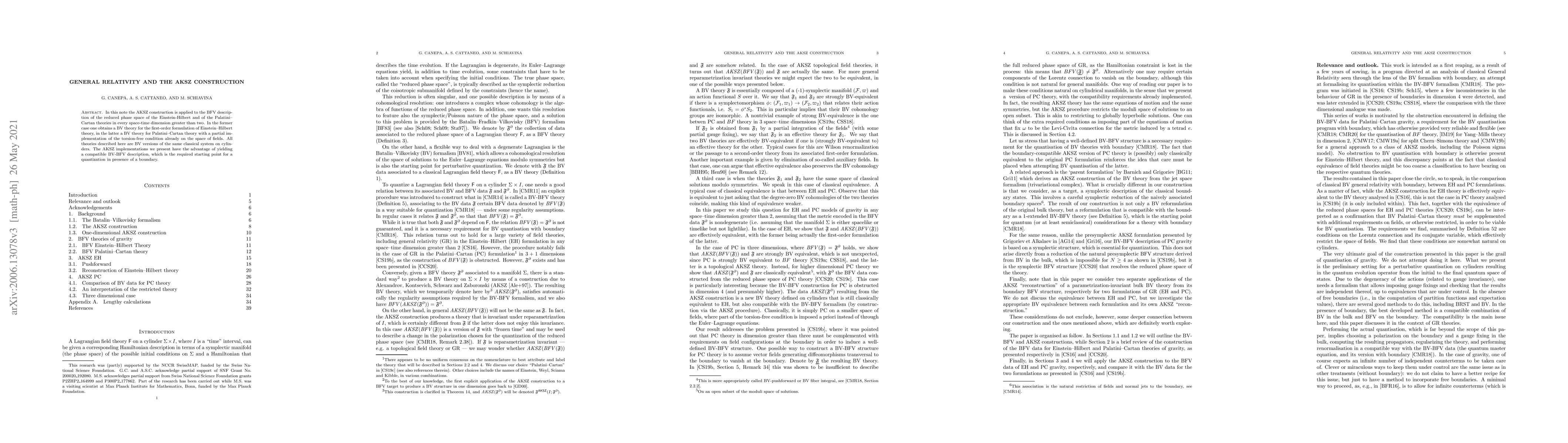In this note the AKSZ construction is applied to the BFV description of the reduced phase space of the Einstein-Hilbert and of the Palatini--Cartan theories in every space-time dimension greater than two. In the former case one obtains a BV theory for the first-order formulation of Einstein--Hilbert theory, in the latter a BV theory for Palatini--Cartan theory with a partial implementation of the torsion-free condition already on the space of fields. All theories described here are BV versions of the same classical system on cylinders. The AKSZ implementations we present have the advantage of yielding a compatible BV-BFV description, which is the required starting point for a quantization in presence of a boundary.