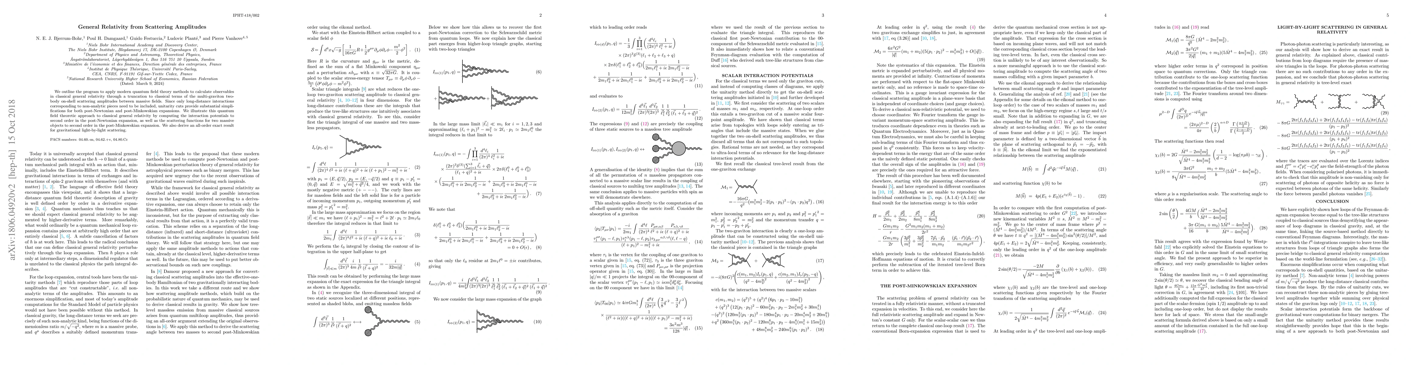 This paper proposes using quantum field theory methods to derive classical general relativity from scattering amplitudes, simplifying calculations via unitarity cuts. It computes post-Newtonian and post-Minkowskian expansion interaction potentials and scattering functions, and derives an exact result for gravitational light-by-light scattering.