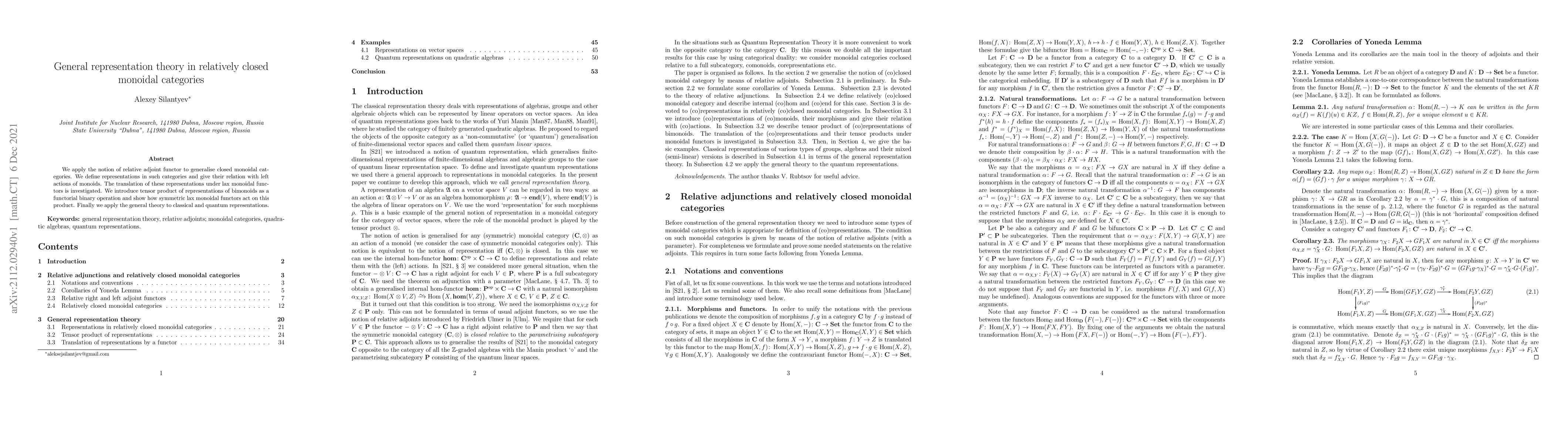 This paper generalizes closed monoidal categories using relative adjoint functors, defining representations and their connection to monoid actions. It investigates the translation of these representations under lax monoidal functors and introduces a tensor product for bimonoid representations, examining its behavior under symmetric lax monoidal functors, and applies the theory to classical and quantum representations.