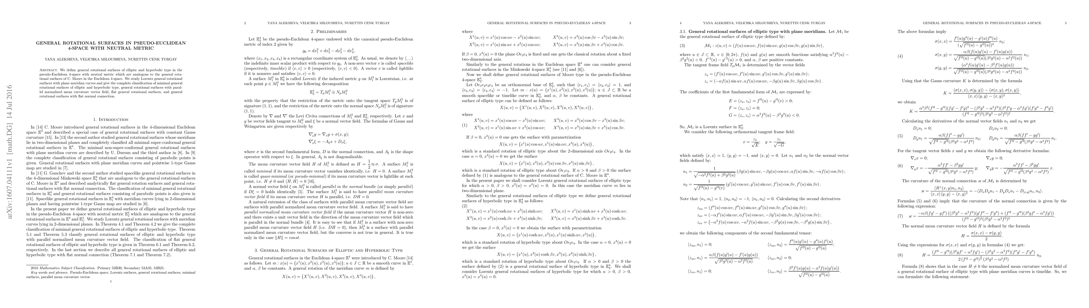 This paper defines and classifies general rotational surfaces in pseudo-Euclidean 4-space with neutral metric, analogous to Moore's work in Euclidean 4-space, focusing on minimal, flat, and surfaces with parallel mean curvature vector fields.