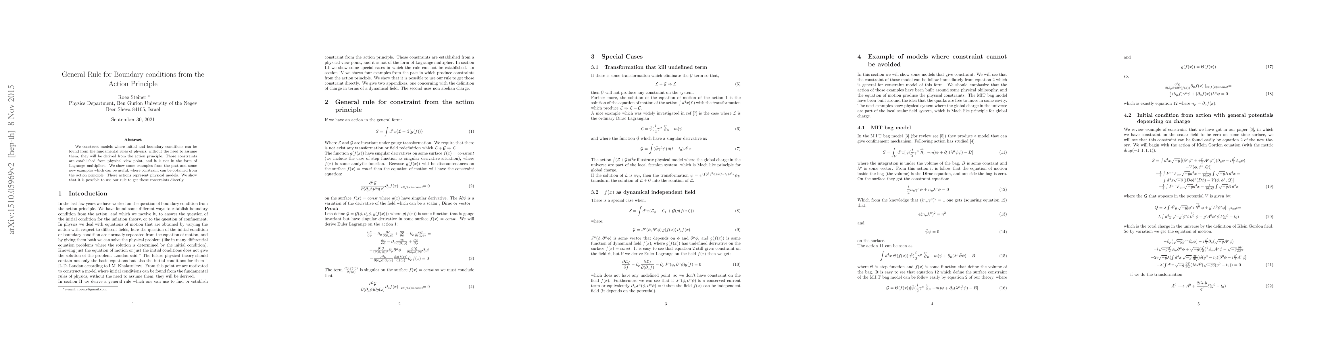 We construct models where initial and boundary conditions can be found from the fundamental rules of physics, without the need to assume them, they will be derived from the action principle. Those constraints are established from physical view point, and it is not in the form of Lagrange multipliers. We show some examples from the past and some new examples which can be useful, where constraint can be obtained from the action principle. Those actions represent physical models. We show that it is possible to use our rule to get those constraints directly.