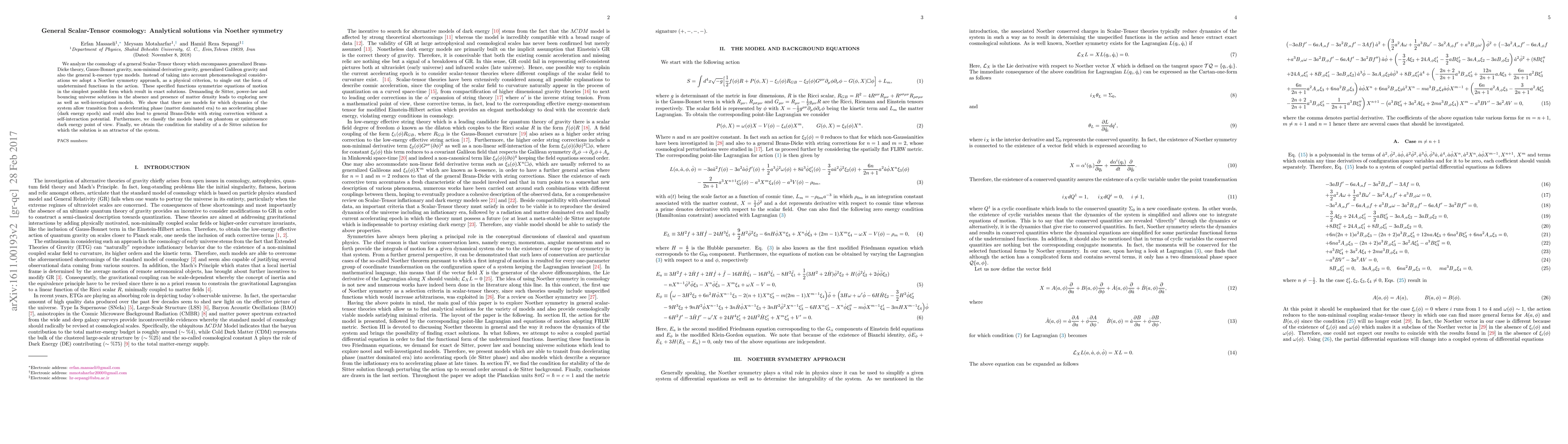 This paper explores the cosmology of general Scalar-Tensor theories using Noether symmetry to derive analytical solutions, focusing on models like Brans-Dicke and k-essence. It demonstrates the transition from deceleration to acceleration in the universe's expansion and classifies models based on dark energy characteristics, concluding with conditions for de Sitter solution stability.