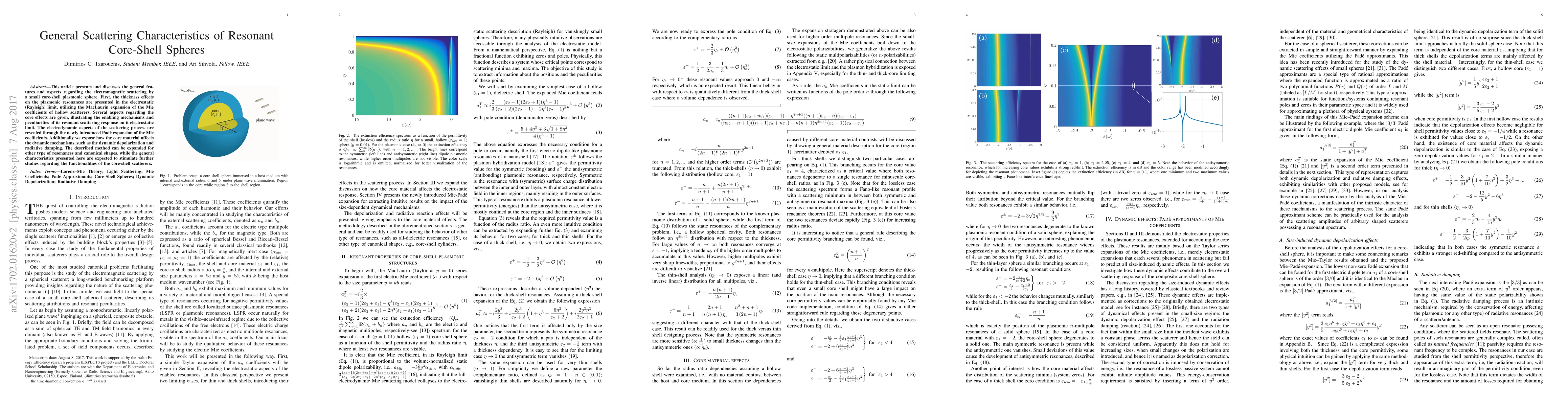 This paper investigates the electromagnetic scattering of small core-shell plasmonic spheres, detailing the effects of core thickness on plasmonic resonances and introducing a Padé expansion method for electrodynamic analysis. It highlights the dynamic mechanisms influenced by the core material, aiming to stimulate further research on core-shell scatterers.