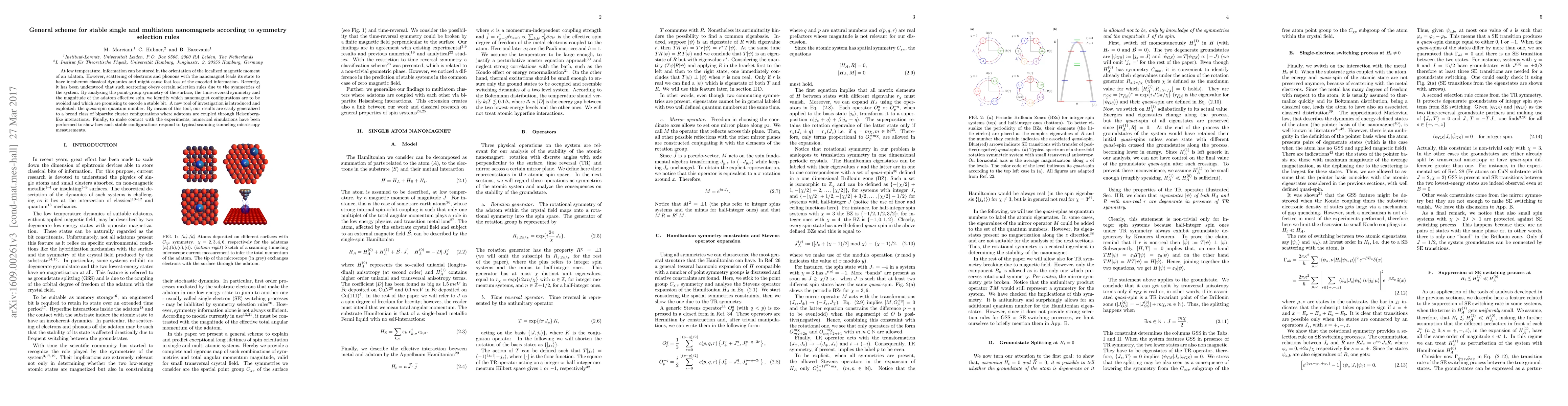 Researchers identified stable nanomagnet configurations that can encode information using low-temperature adatoms on surfaces, leveraging symmetry selection rules and a new quasi-spin quantum number tool. These findings aim to improve the stability of magnetic information storage in nanoscale devices.