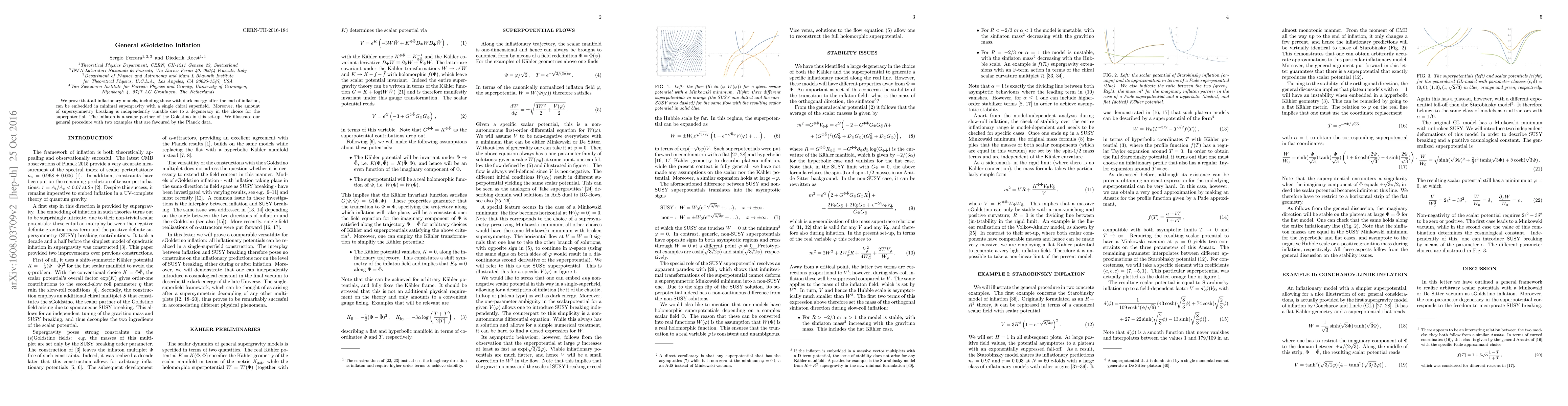We prove that all inflationary models, including those with dark energy after the end of inflation, can be embedded in minimal supergravity with a single chiral superfield. Moreover, the amount of supersymmetry breaking is independently tunable due to a degeneracy in the choice for the superpotential. The inflaton is a scalar partner of the Goldstino in this set-up. We illustrate our general procedure with two examples that are favoured by the Planck data.
