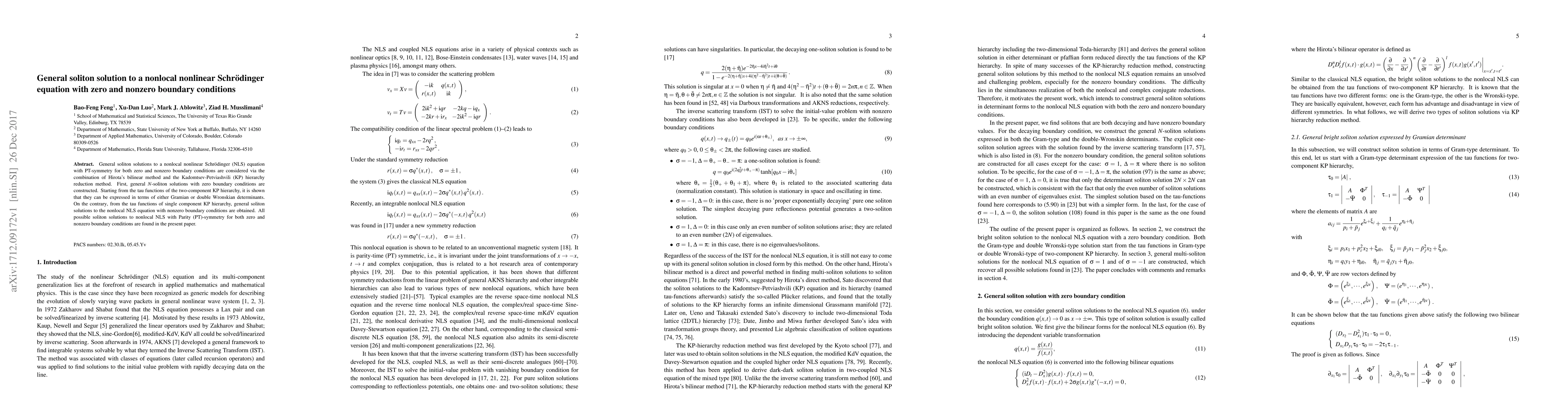This paper explores general soliton solutions to a nonlocal nonlinear Schrödinger equation with PT-symmetry, employing Hirota's bilinear method and KP hierarchy reduction. It constructs $N$-soliton solutions for zero boundary conditions using Gramian or double Wronskian determinants and finds soliton solutions for nonzero boundary conditions via the single component KP hierarchy.